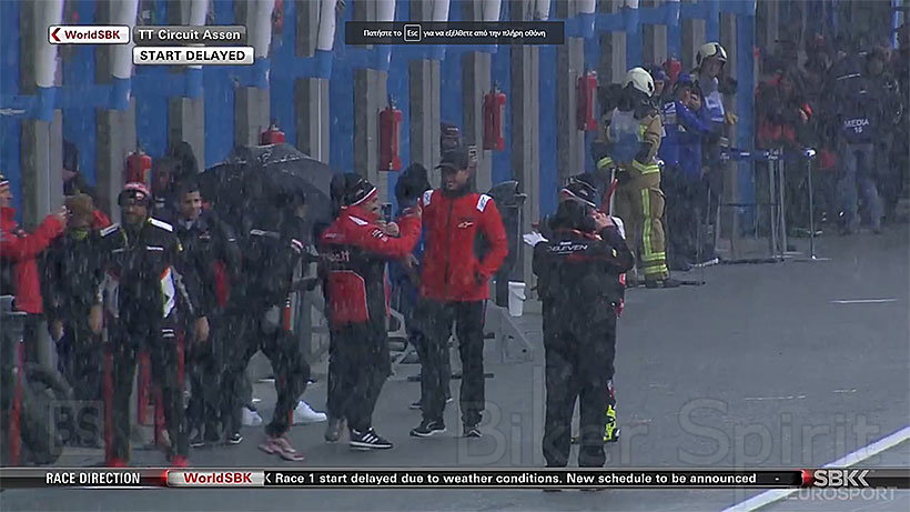 Ο πρώτος αγώνας της κατηγορίας Superbike που ήταν προγραμματισμένος να γίνει στις 3 το μεσημέρι αναβλήθηκε λόγω των άσχημων καιρικών συνθηκών!