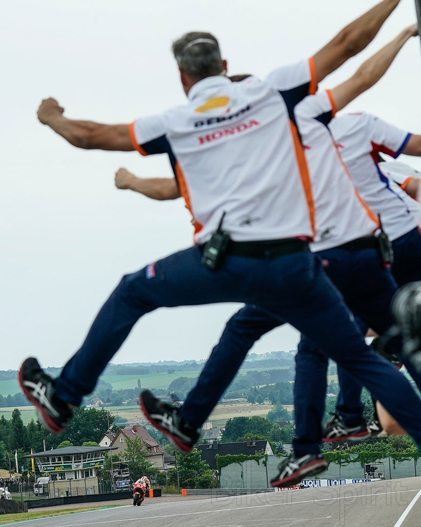 «Η νίκη εδώ στο Sachsenring είναι πολύ σημαντική. Ήταν μια εξαιρετικά σημαντική μέρα, αλλά ακόμη περισσότερο για τον αναβάτη. Ο Marc Márquez έχει περάσει πολύ καιρό ταλαιπωρία, χωρίς αγώνες, χωρίς αποτελέσματα και αυτό είναι πολύ οδυνηρό για έναν αναβάτη σαν κι αυτόν. Πρέπει να εκτιμήσουμε τι έχει κάνει και να τον ευχαριστήσουμε για όλες τις προσπάθειές του κατά τη διάρκεια αυτής της περιόδου, και αυτό που έκανε στη Γερμανία ήταν πραγματικά εκπληκτικό. Ήταν πολύ σημαντικό για την ομάδα της Repsol Honda, για όλο το προσωπικό που εργάζεται στο HRC, όλους τους ανθρώπους που μας υποστηρίζουν εδώ στην πίστα και πίσω από τα παρασκήνια, μηχανικοί, τεχνικοί, όλοι. Είναι μια ξεχωριστή μέρα. Είναι μια μέρα να ευχαριστήσω όλους, ειδικά τον Marc.»