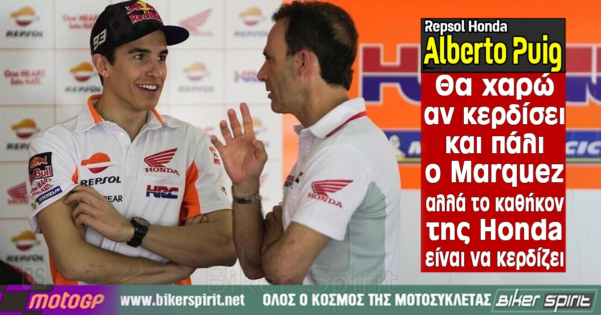 Alberto Puig: “Θα χαρώ αν κερδίσει ξανά ο Márquez, αλλά θέλω να τον κερδίσω το καθήκον της Honda είναι να κερδίζει”