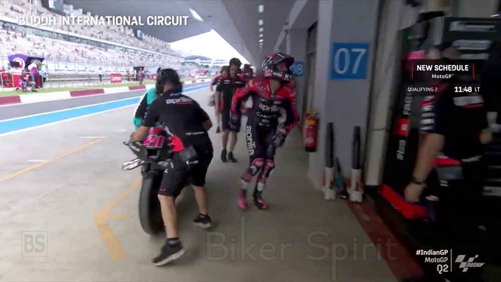 Ο Aleix Espargaro πρωταγωνίστησε σε μια αμφιλεγόμενη εικόνα στο Ινδικού GP, όπως μπορείτε να δείτε στο παρακάτω video. Ο Καταλανός δεν είχε συντονιστεί καλά με την ομάδα του στην αρχή του Q2 και αυτό το λάθος τον οδήγησε σε τρομερό θυμό αφού προσπάθησε να βγει από τα πιτ που δεν είχαν ανοίξει ακόμα, και αναγκάστηκε να επιστρέψει στο box πολύ θυμωμένος!