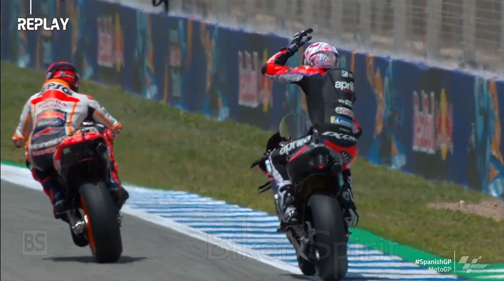 Είναι φανερό ότι ο Marquez δεν προσπάθησε να τον ακολουθήσει στην ρόδα του για να κάνει χρόνο, αφού ο Marquez πήγαινε πολύ αργά για άλλο λόγο όπως ο ίδιος εξήγησε, ενώ και ο ίδιος ο Aleix Espargaro τόνισε ότι ο Marquez πήγαινε αργά!