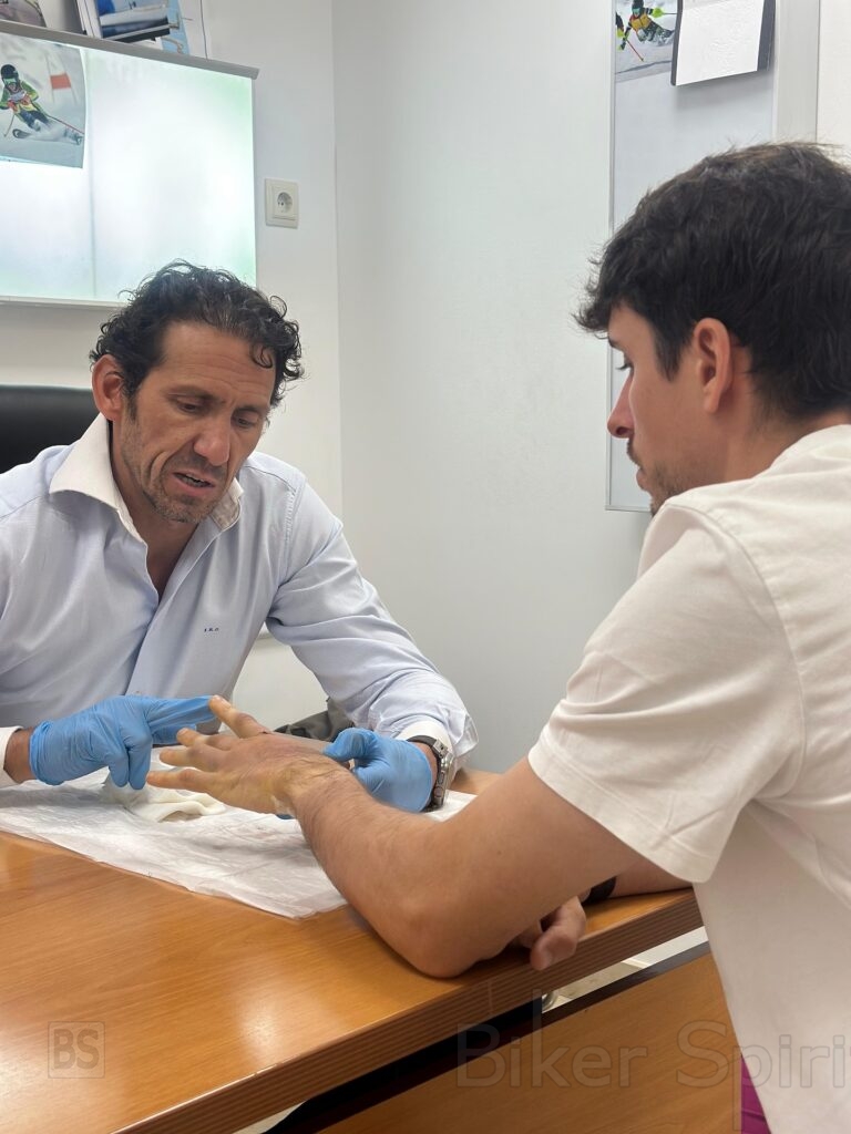 Ο αναβάτης της Gresini υπέστη κάταγμα στον δεύτερο μετακάρπιο του δείκτη του αριστερού χεριού, ένα σοβαρό πλήγμα σε μια σεζόν όπου μέχρι στιγμής ήταν σταθερά ανταγωνιστικός. Η ζημιά ήταν άμεση και κρίθηκε απαραίτητη η χειρουργική επέμβαση στο νοσοκομείο Ruber Quiron, η οποία πραγματοποιήθηκε με επιτυχία.