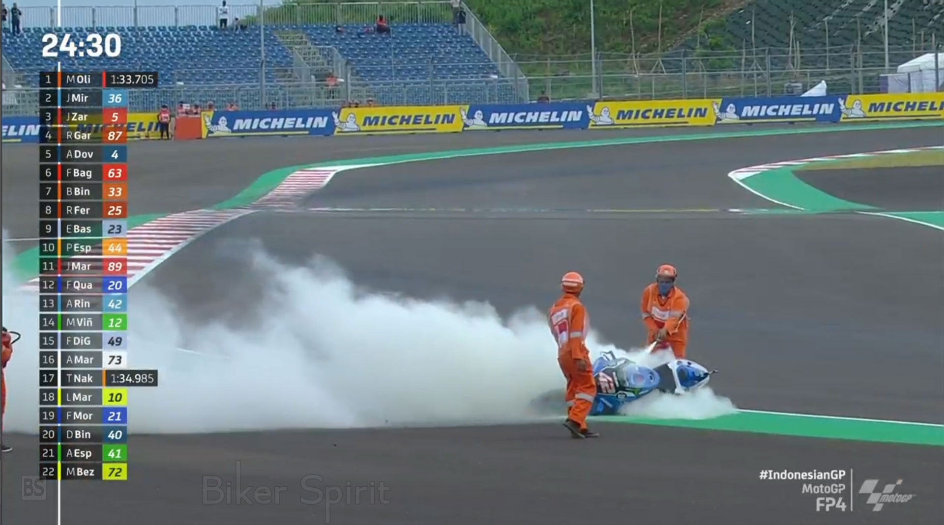 Μάλιστα από την διαρροή λαδιού του Suzuki, στην στροφή 13, έπεσε ο Johan Zarco, ευτυχώς χωρίς να τραυματιστεί!