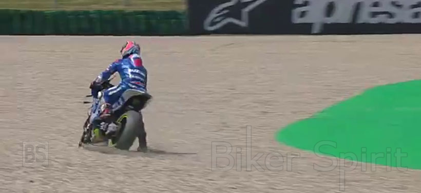 Ο αναβάτης της Suzuki σπρώχτηκε ελαφρώς από τον Zarco και έπρεπε να βγει εκτός πίστας στο χαλίκι, πέφτοντας από την τέταρτη θέση στην τελευταία – με τον Rins να αναγκάζεται να ανακάμψει στην 11η θέση, έχοντας αισθανθεί ότι είχε ρυθμό να αγωνιστεί για το βάθρο.