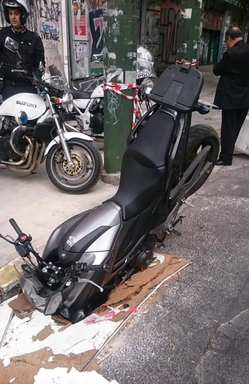 Εδώ και μερικές μέρες το γύρο των Social Media (Μέσα κοινωνικής δικτύωσης) μια μοτοσυκλέτα “φυτεμένη” στην άκρη του δρόμου και όχι κάποιου επαρχιακού δρόμου μιας χώρας του τρίτου κόσμου, άλλα στο κέντρο της Αθήνας!