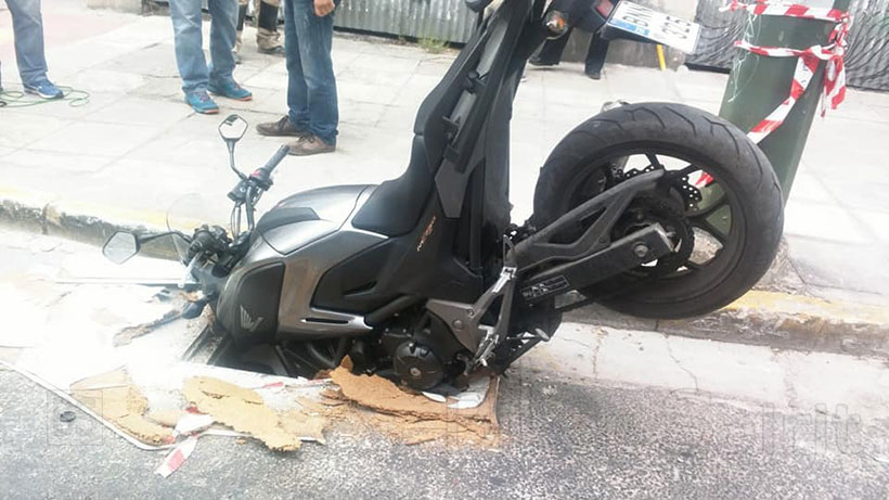 Οι φωτογραφίες τα λένε όλα, εμείς τι να περιγράψουμε παρά μόνο για άλλη μια φορά την αγανάκτηση μας για την αδιάφορη πολιτεία, όπου ένα ανοικτό φρεάτιο, κατάπιε στην κυριολεξία μια μοτοσυκλέτα και έστειλε τον αναβάτη της στο νοσοκομείο, ευτυχώς χωρίς να χάσει την ζωή του.