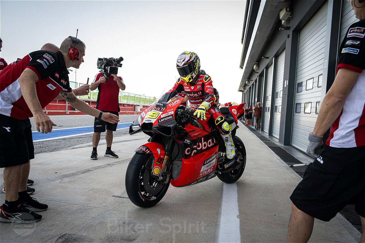 Μαζί με τον πιλότο δοκιμής της Ducati Michele Pirro, ο πρωταθλητής Superbike μπορεί να αποκτήσει εμπειρία με τα νέα Desmosedici στο Misano και εντυπωσιάζεται από την εξέλιξη του MotoGP Ducati .