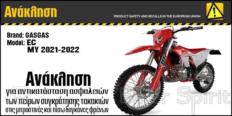 Η Γενική Γραμματεία Βιομηχανίας ανακοινώνει ότι η εταιρεία K–Motors South East Europe SA, Επίσημη Αντιπροσωπεία μοτοσικλετών GASGAS στην Ελλάδα, εκτελεί πρόγραμμα ανάκλησης μοτοσικλετών GASGAS μοντέλα EC MY 2021 & 2022.