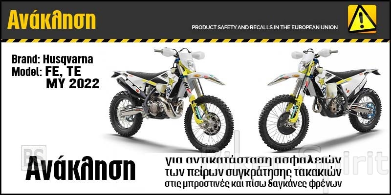 Ανάκληση μοτοσικλετών Husqvarna μοντέλα FE, TE – MY 2022 προκειμένου να γίνει αντικατάσταση των ασφαλειών των πείρων συγκράτησης των τακακιών στις μπροστινές και πίσω δαγκάνες φρένων