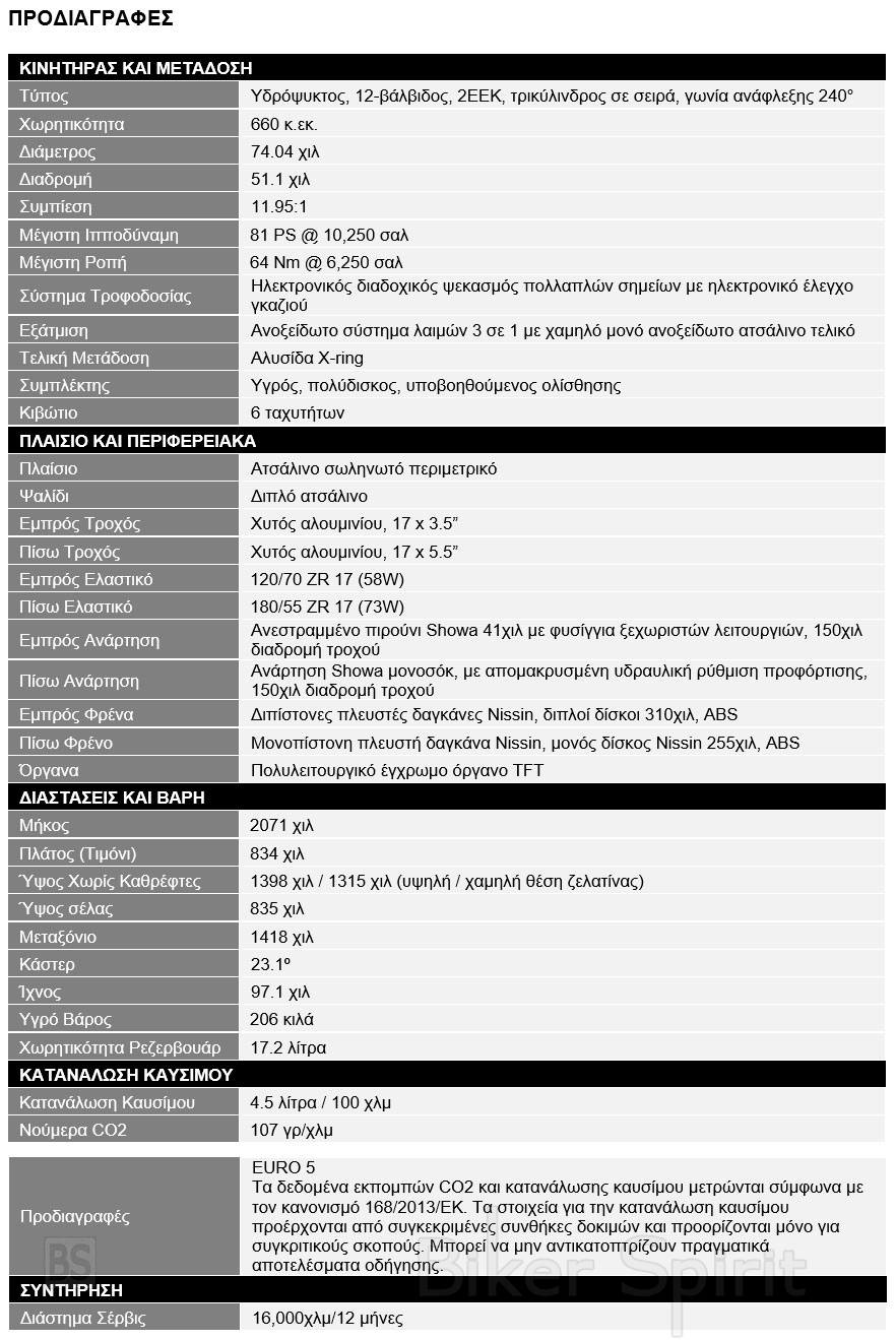 - Η πιο ισχυρή μοτοσυκλέτα στην κατηγορία της με μέγιστη ισχύ 81PS στις 10.250 σ.α.λ. και μέγιστη ροπή 64Nm στις 6.250 σ.α.λ