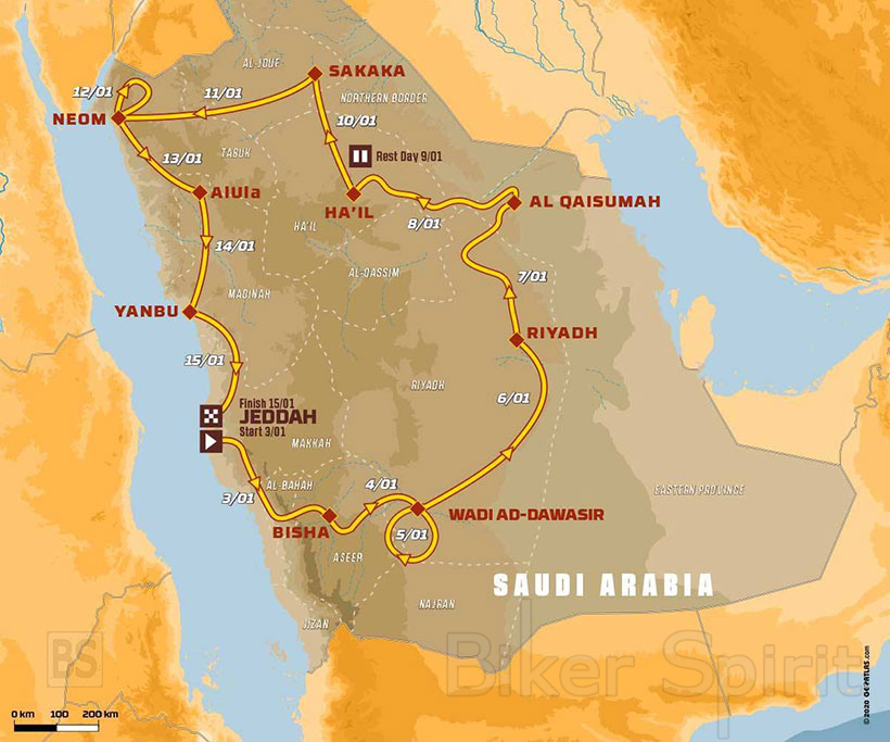 Οι οδηγοί έπρεπε να αντιμετωπίσουν 457 χιλιόμετρα ειδικής ανάμεσα σε βουνά με πυκνή και πολύ άμμο, με ιδιαίτερη προσοχή στην πλοήγηση, ώστε να μην χαθούν ανάμεσα στους αμμόλοφους που είναι τόσο χαρακτηριστικό αυτού του ράλι.