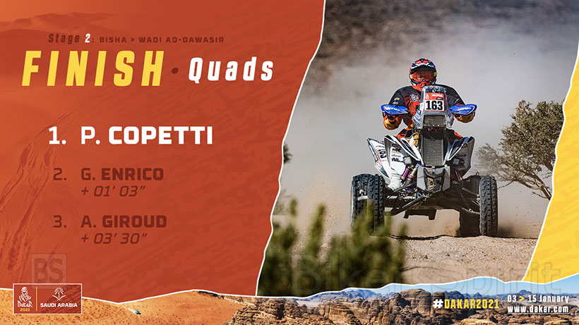 Στην κατηγορία των QUAD, ο Pablo Copetti κέρδισε την ειδική με 1m03s, μπροστά από τον Giovanni Enrico, αλλά ο Alexandre Giroud συνεχίζει να είναι πρώτος συνολικά με 1m09s διαφορά.
