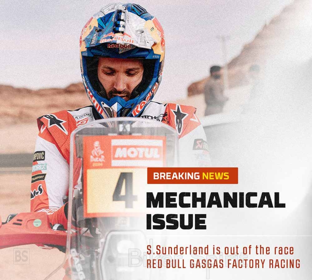 Ο οδηγός της Red Bull GASGAS Factory Racing, Sam Sunderland, έχασε τρεις ώρες με τεχνικά προβλήματα στην εκκίνηση του μαραθωνίου και τον ανάγκασε να εγκαταλείψει το φετινό Dakar! Ο Sam Sunderland, νικητής του Ντακάρ το 2017 και το 2022 και παγκόσμιος πρωταθλητής Ράλι το 2019, πρέπει να τερματίσει ακούσια το Ντακάρ 2024 νωρίς σήμερα.