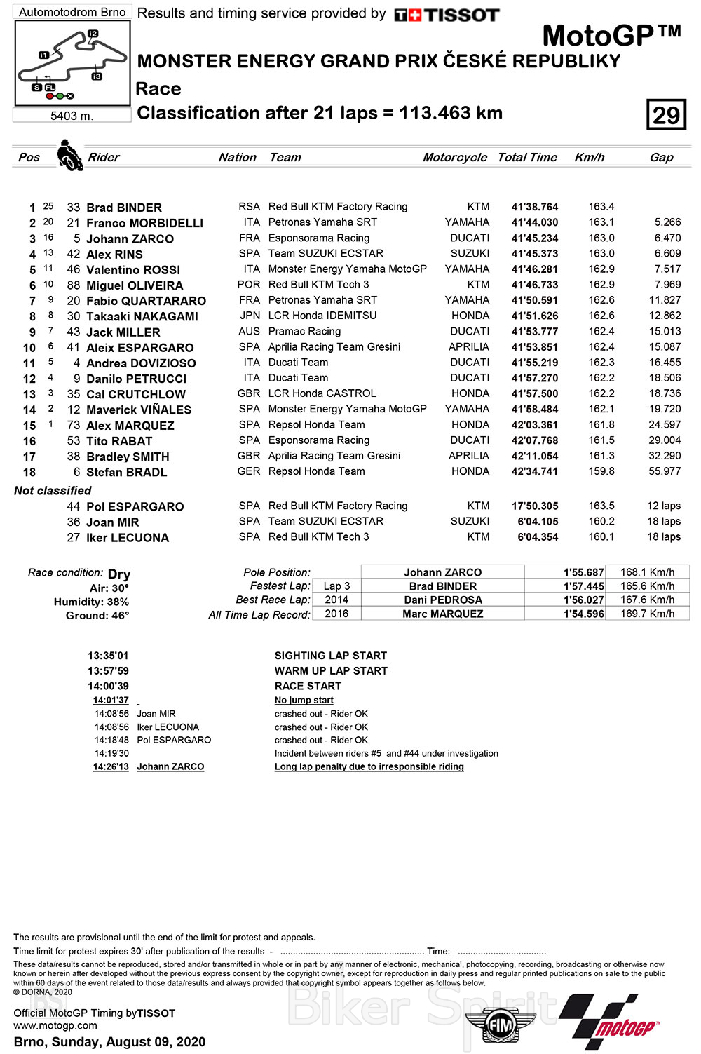 O αγώνας για τον Andrea Dovizioso, στο Brno δεν ήταν ο καλύτερος για να τον θυμάται, αφού πέρασε τη γραμμή τερματισμού στην ενδέκατη θέση αφού ξεκίνησε από τη δέκατη όγδοη θέση.