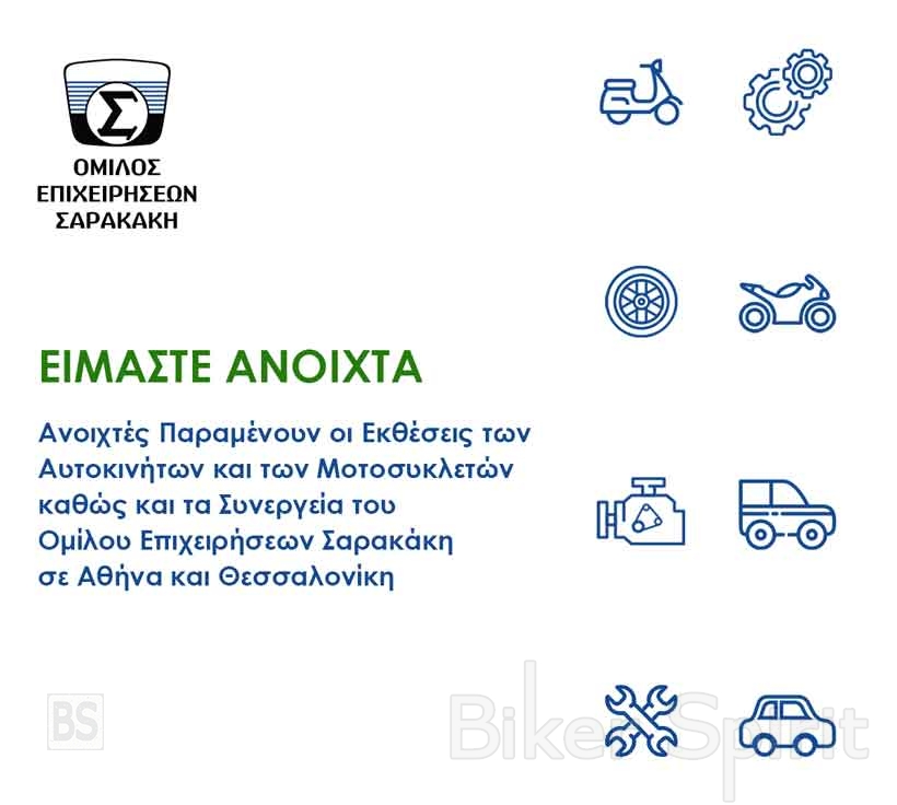 Ανοιχτές οι Εκθέσεις Αυτοκινήτων, Μοτοσυκλετών & τα Συνεργεία του Ομίλου Επιχειρήσεων Σαρακάκη
