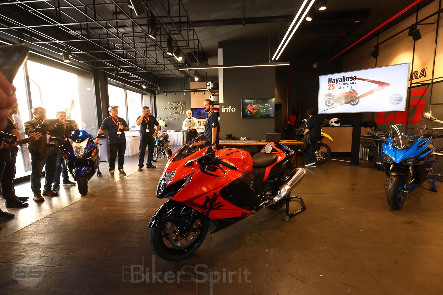 Οι προσκεκλημένοι δημοσιογράφοι του ειδικού τύπου είχαν την ευκαιρία να παρακολουθήσουν μία σύντομη ιστορική αναδρομή από την εμφάνιση της 1ης γενιάς Hayabusa το 1999 που όρισε την κατηγορία των “Ultimate Sport” μέχρι και την εμφάνιση της 3ης γενιάς το 2021 ενώ η παρουσίαση ολοκληρώθηκε με την αποκάλυψη της νέας επετειακής έκδοσης Suzuki Hayabusa GSX1300R 25th anniversary στον χρωματισμό Glass Blaze Orange & Glass Sparkle Black.