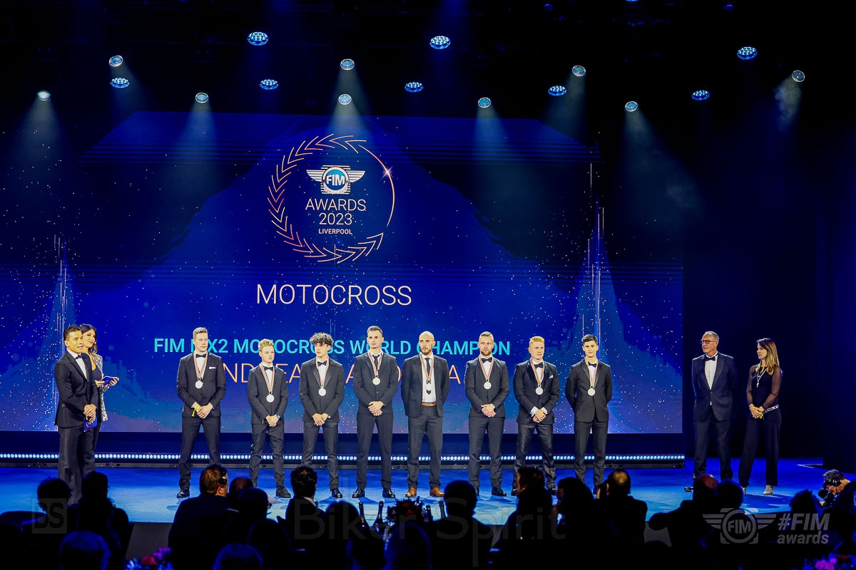 Επόμενοι στη σκηνή ανέβηκαν οι FIM Motocross Legends Dave Thorpe και Livia Lancelot για να παρουσιάσουν τα μετάλλια στην κατηγορία Motocross σε μια σύνθεση που περιελάβανε Aki Pihlaja – Παγκόσμιος Πρωταθλητής Snowcross της FIM. Dani Heitink– Παγκόσμιος Πρωταθλητής Motocross Junior FIM 85cc. Mathis Valin – 125cc Junior Motocross World Champion; Andrea Adamo – Παγκόσμιος Πρωταθλητής Motocross FIM MX2. Marvin Vanluchene – Παγκόσμιος Πρωταθλητής FIM Sidecar Motocross Rider. Nicolas Musset – Παγκόσμιος Πρωταθλητής FIM Sidecar Motocross Passenger; Marc-Reiner Schmidt – Παγκόσμιος Πρωταθλητής FIM S1GP SuperMoto. Max Anstie – Παγκόσμιος Πρωταθλητής Supercross FIM SX2.