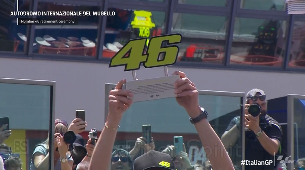 Σήμερα 28 Μαΐου 2022 κατά τη διάρκεια των δοκιμών του Σάββατου του Ιταλικού Grand Prix, στο Mugello, πραγματοποιήθηκε η τελετή απόσυρσης του ιστορικού αριθμού 46 του Valentino Rossi.