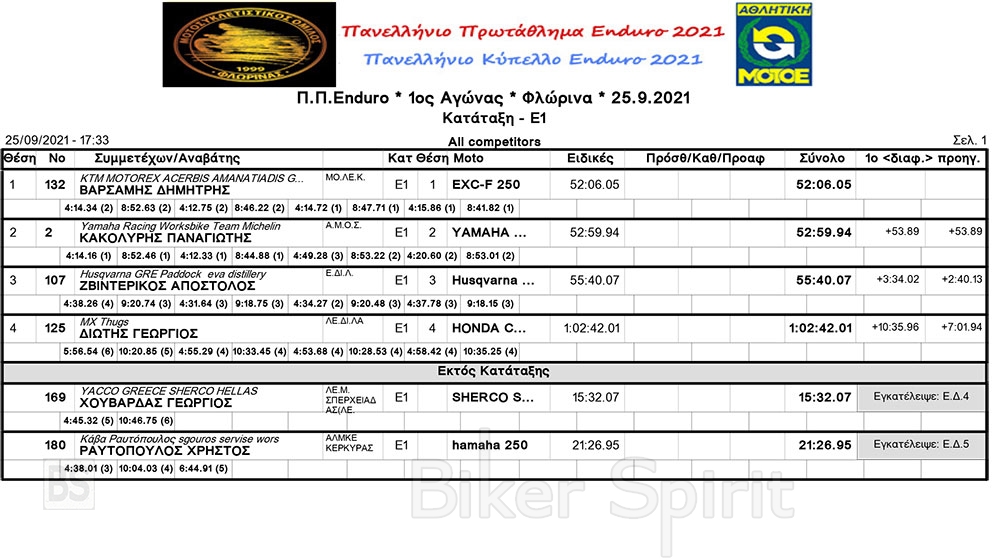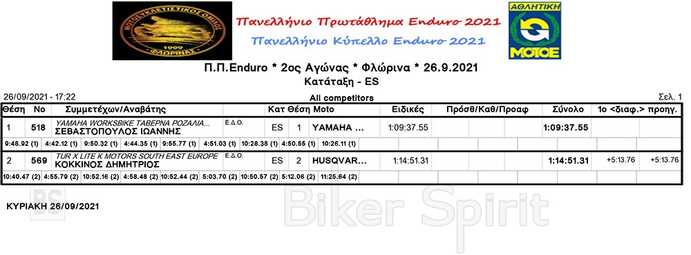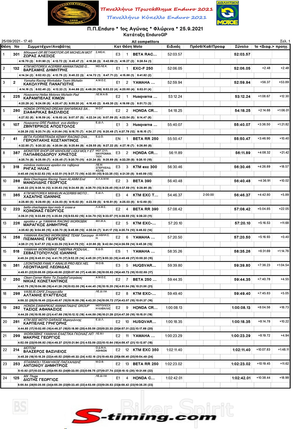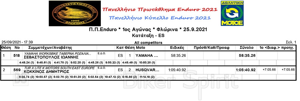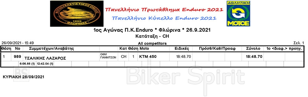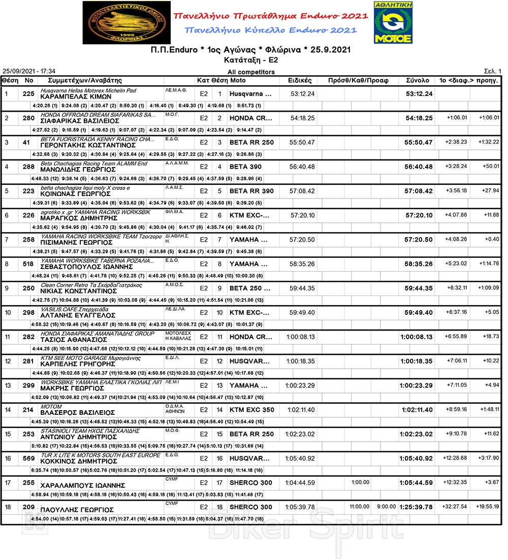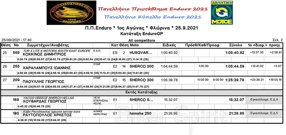 ΑΠΟΤΕΛΕΣΜΑΤΑ 1ου & 2ου Αγώνα Πανελληνίου Πρωταθλήματος ENDURO 2021 και 1ου αγώνα Κυπέλλου στη Φλώρινα