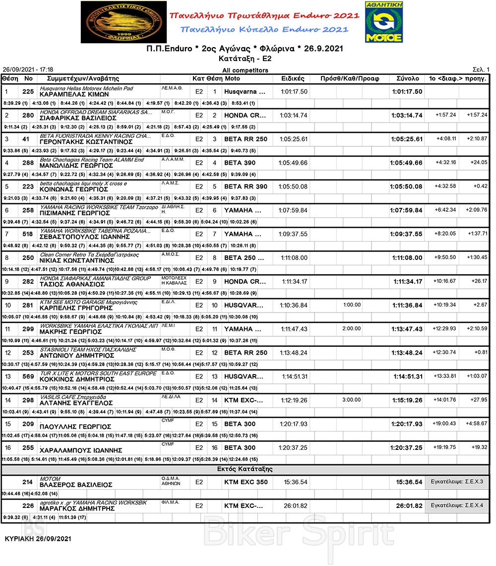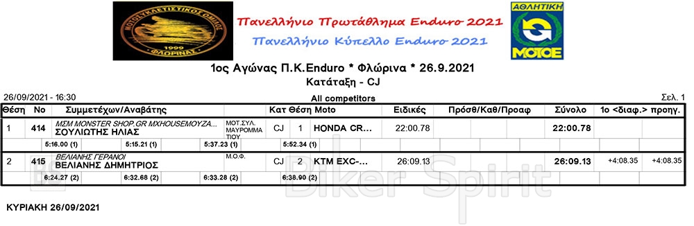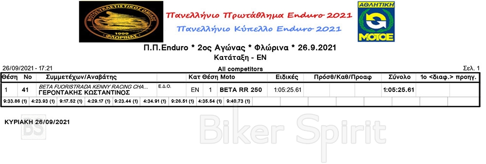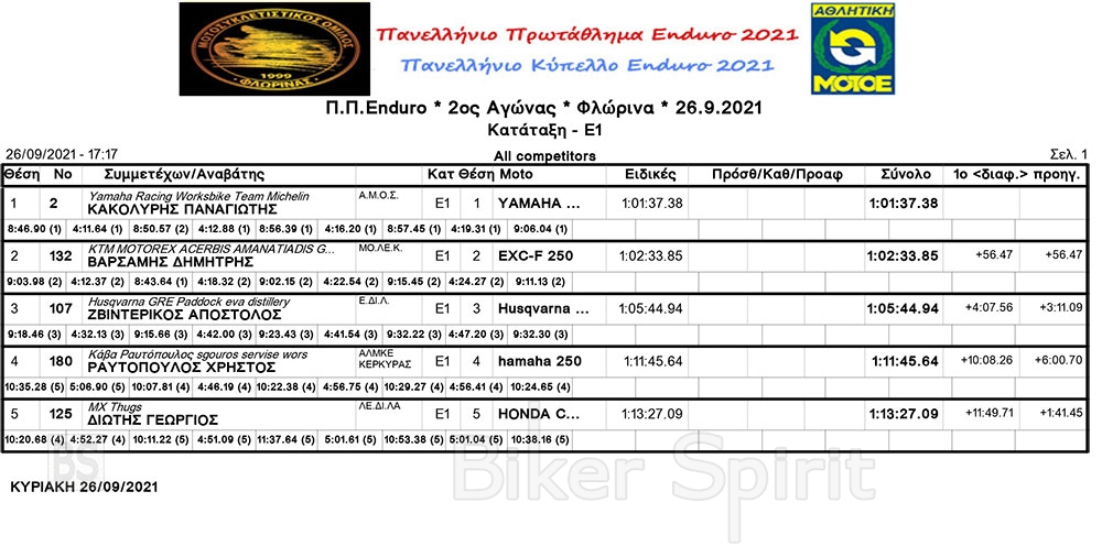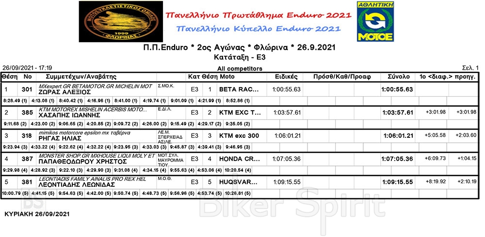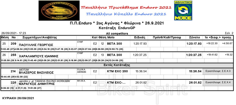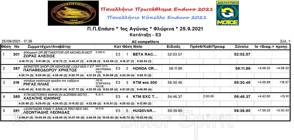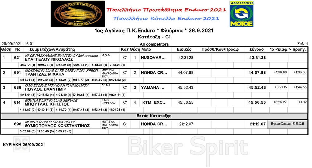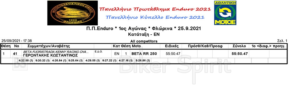 ΑΠΟΤΕΛΕΣΜΑΤΑ 1ου & 2ου Αγώνα Πανελληνίου Πρωταθλήματος ENDURO 2021 και 1ου αγώνα Κυπέλλου στη Φλώρινα
