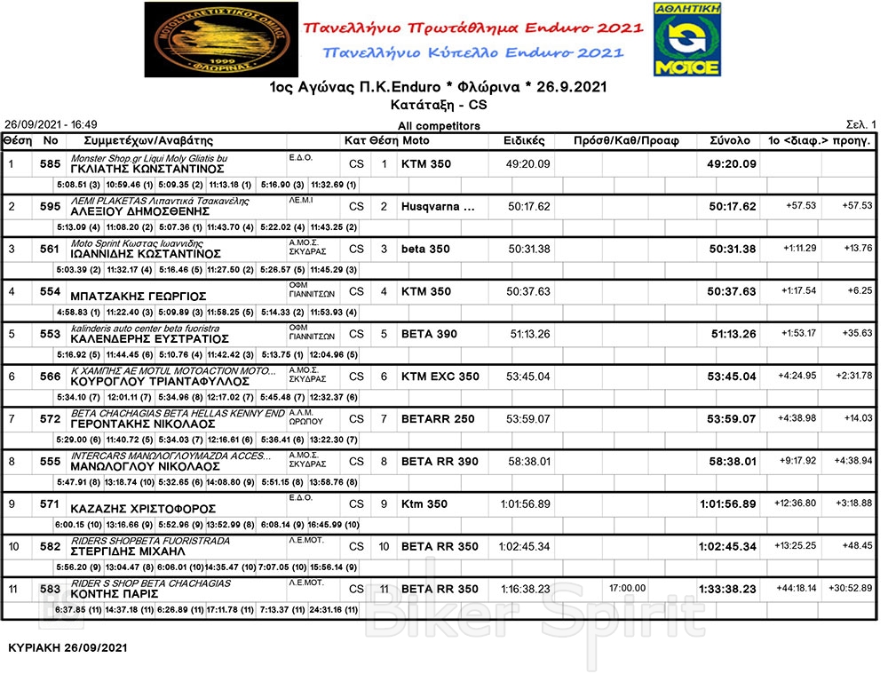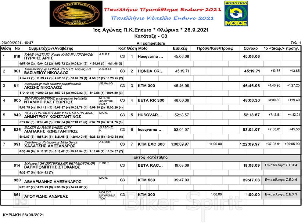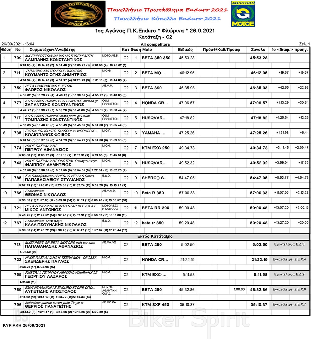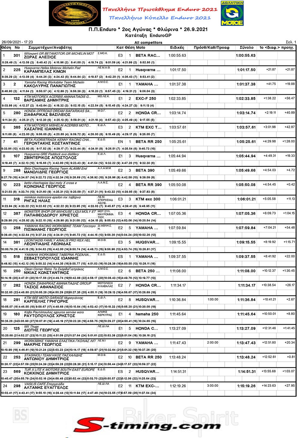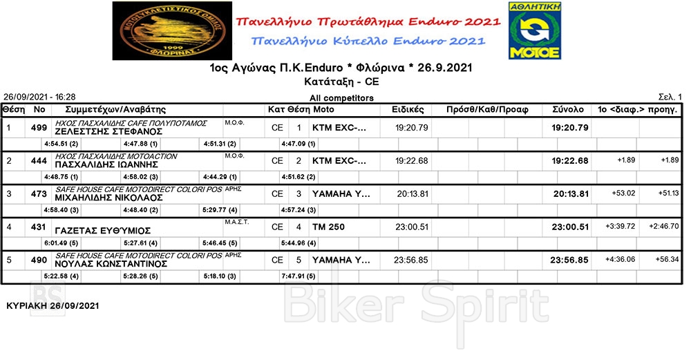 ΑΠΟΤΕΛΕΣΜΑΤΑ 1ου & 2ου Αγώνα Πανελληνίου Πρωταθλήματος ENDURO 2021 και 1ου αγώνα Κυπέλλου στη Φλώρινα