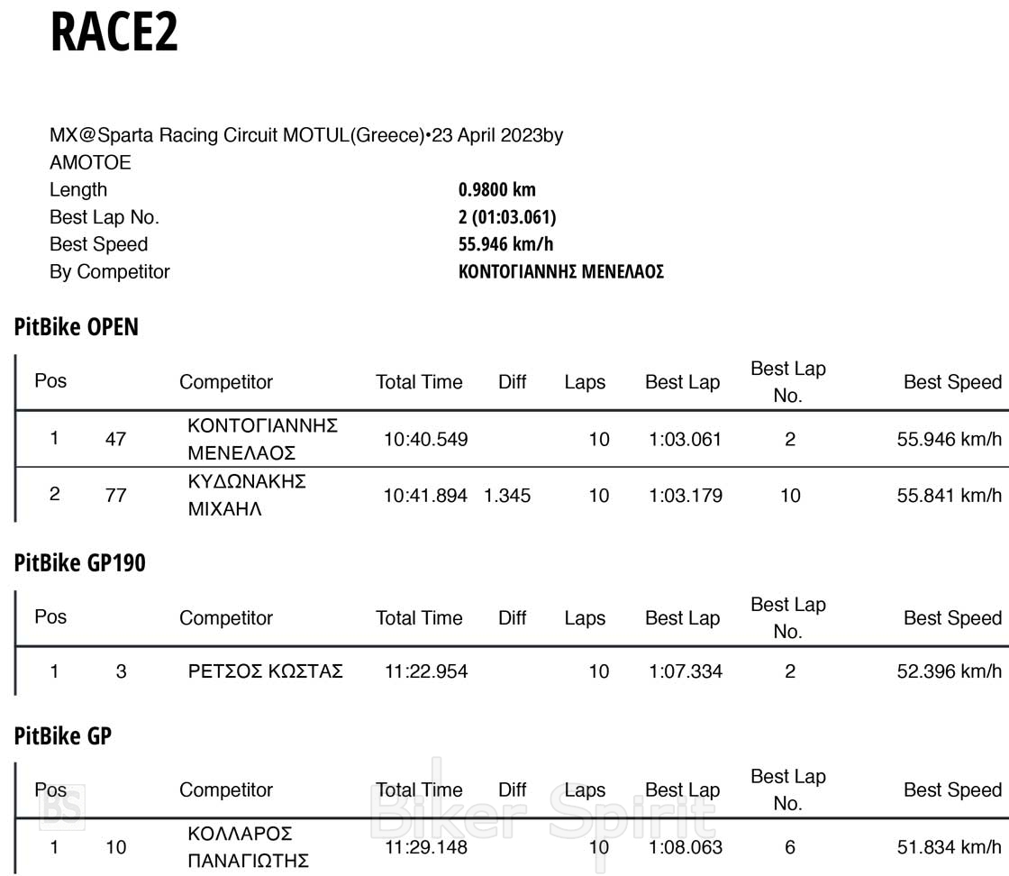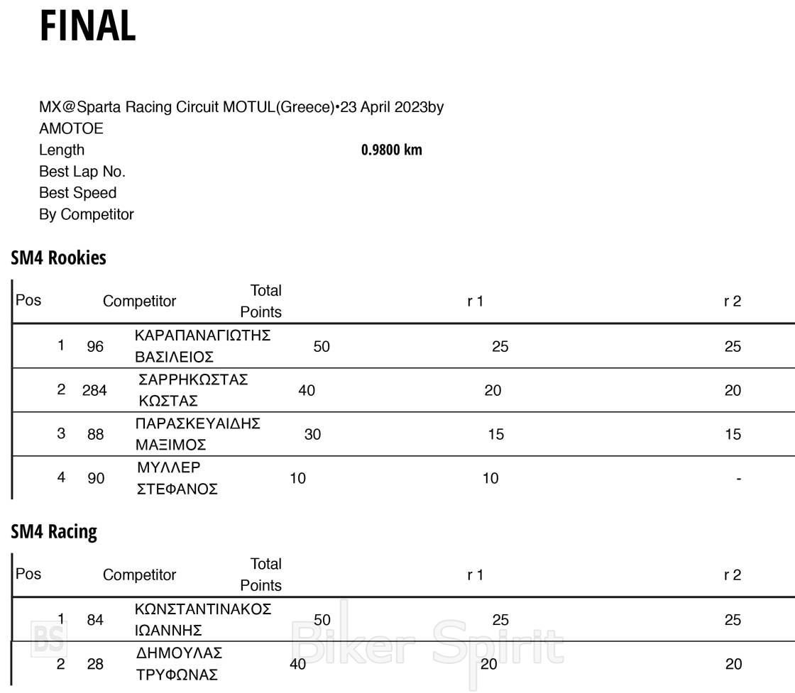 ΑΠΟΤΕΛΕΣΜΑΤΑ 2ου και 3ου αγώνα Πανελληνίου Κυπέλλου SUPERMOTO 2023 – Καλλίφυτο Δράμας