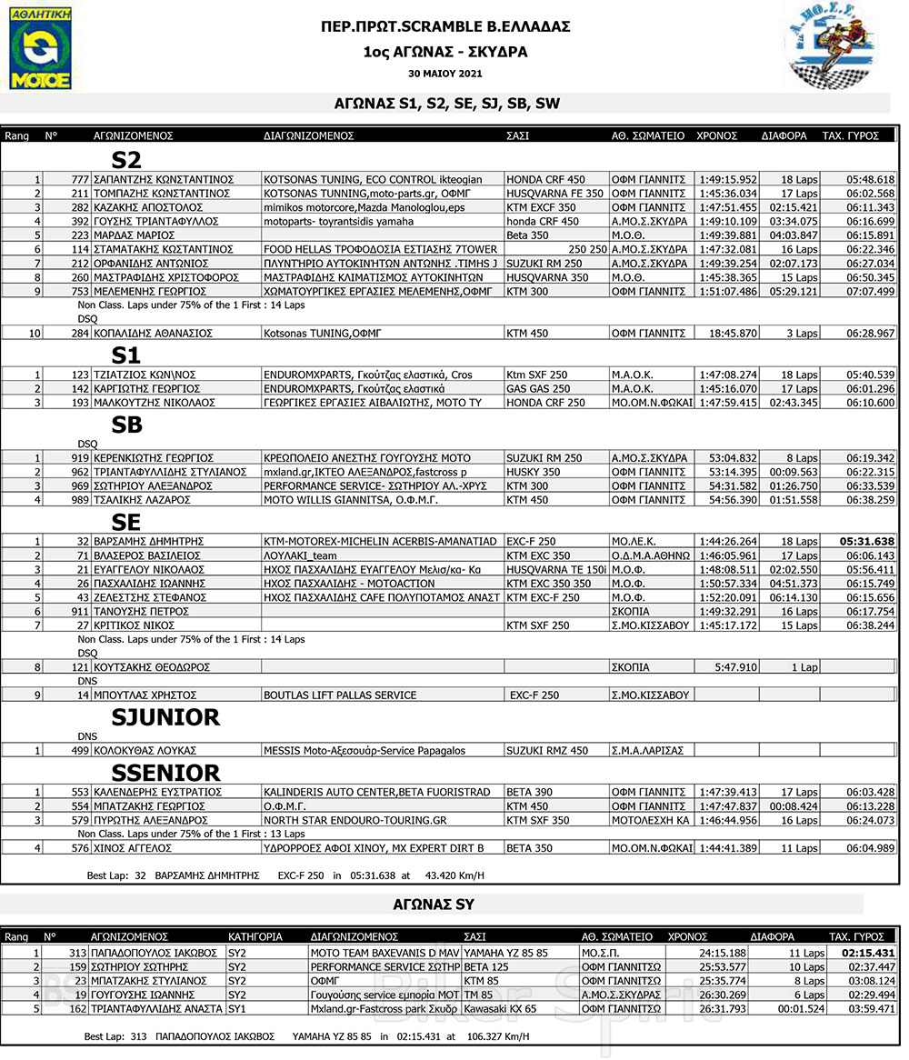 ΑΠΟΤΕΛΕΣΜΑΤΑ 1ου Αγώνα SCRAMBLE Βορείου Ελλάδος – Σκύδρα – Αφιερωμένος στον Μάκη Κωφό