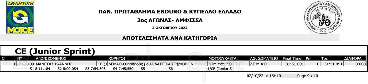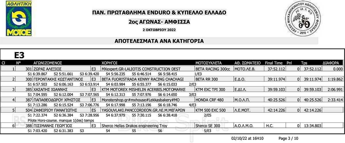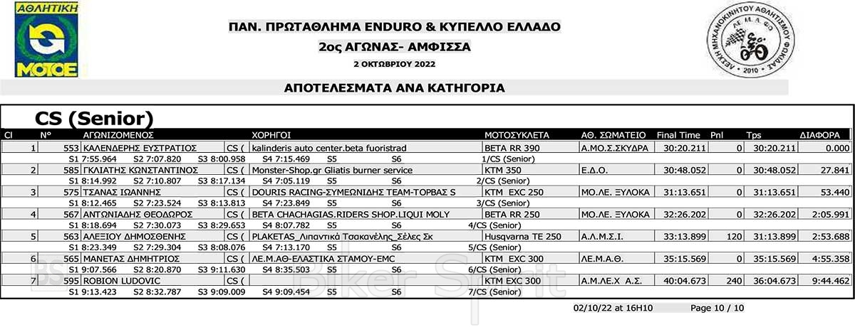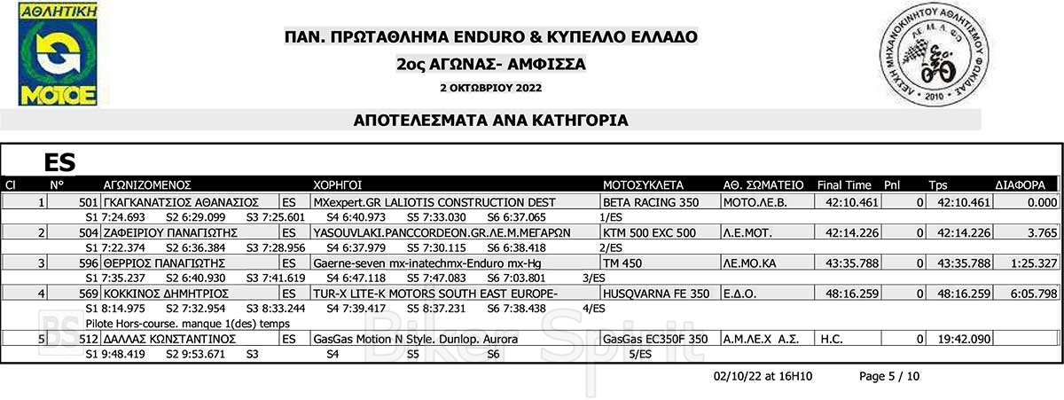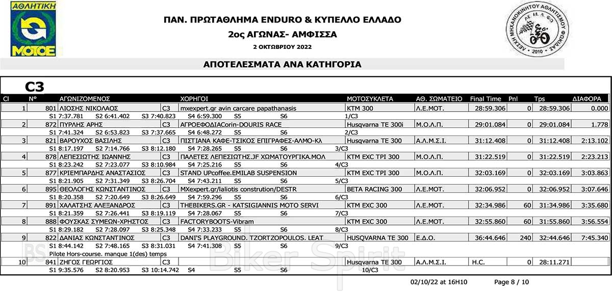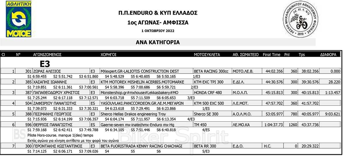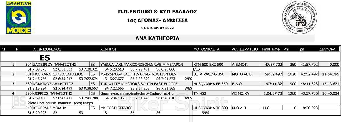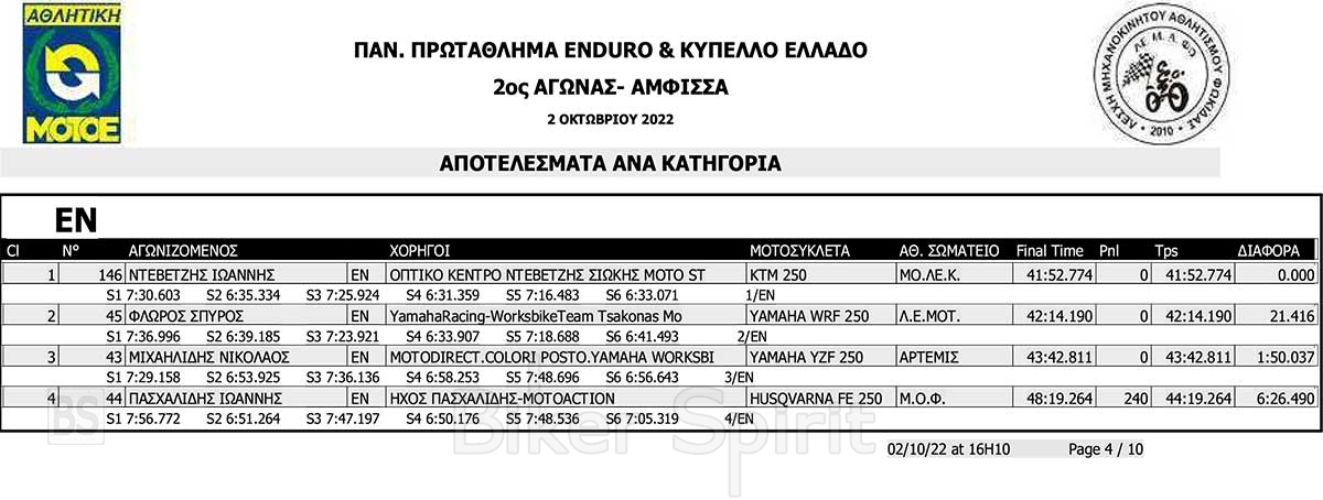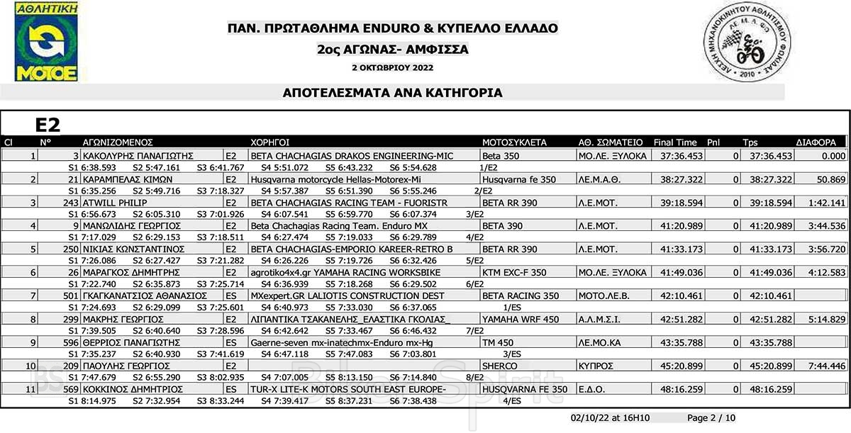 ΑΠΟΤΕΛΕΣΜΑΤΑ 1ου και 2ου αγώνα Πανελληνίου Πρωταθλήματος Enduro και 1ου αγώνα Πανελληνίου Κυπέλλου Enduro 2022 στην Άμφισσα