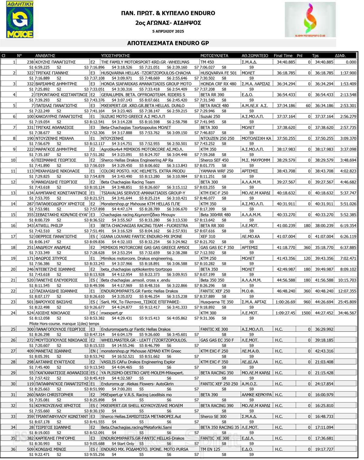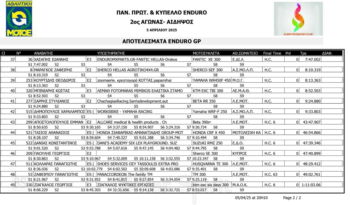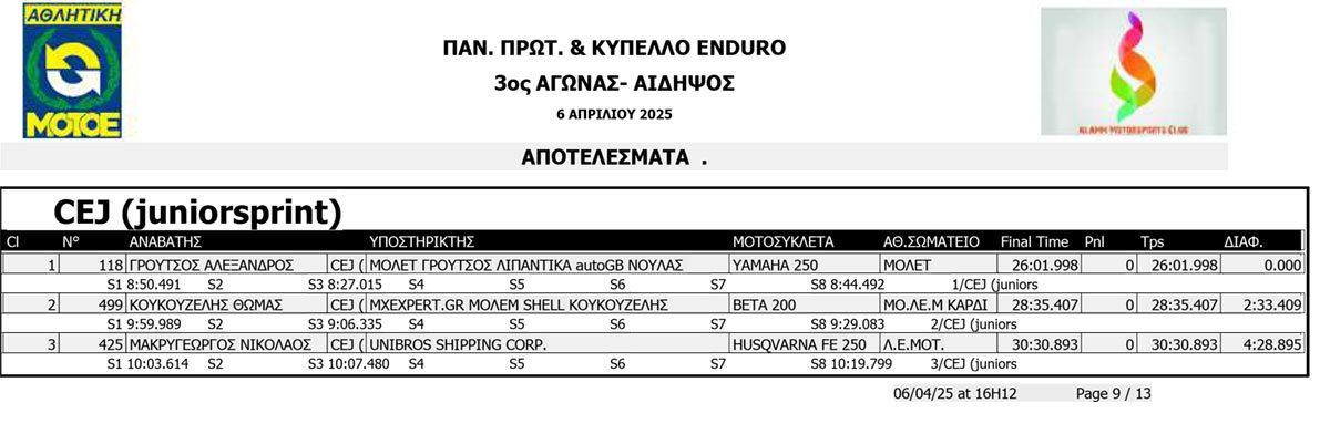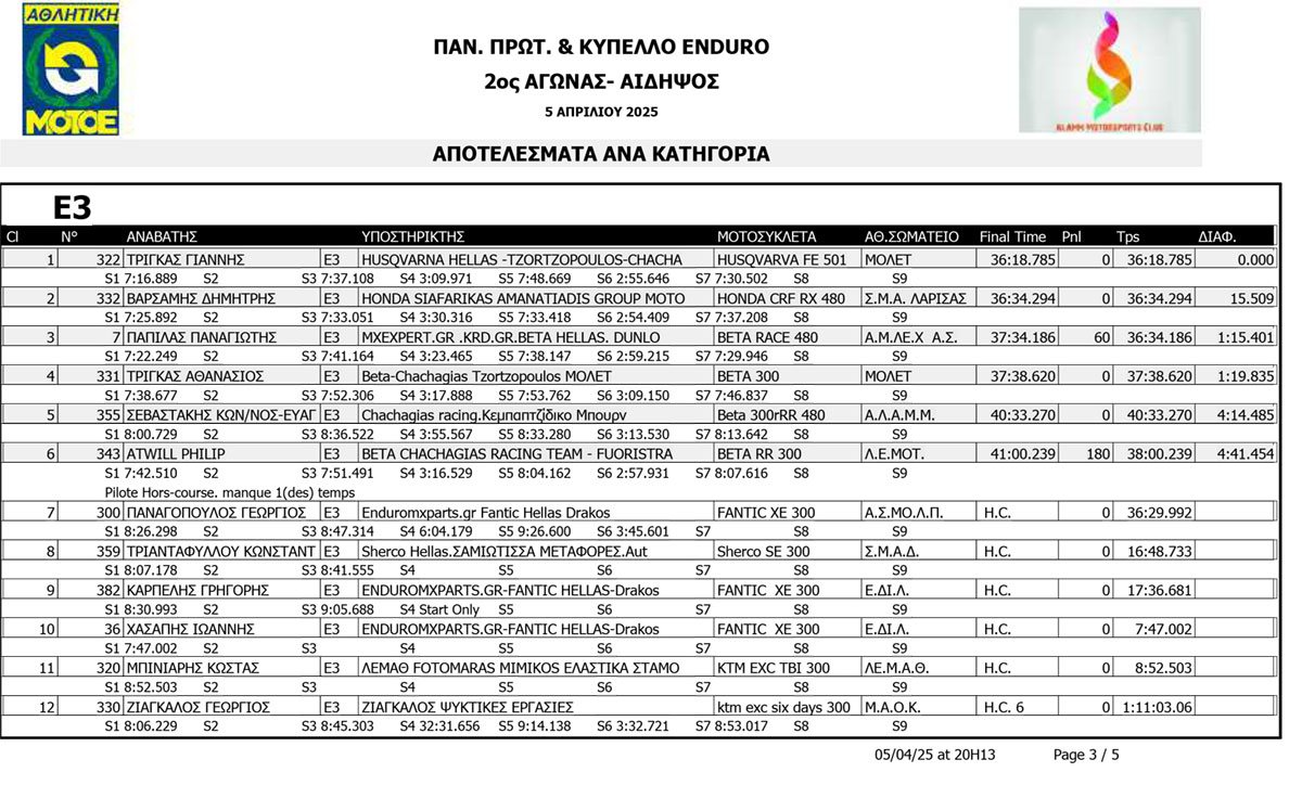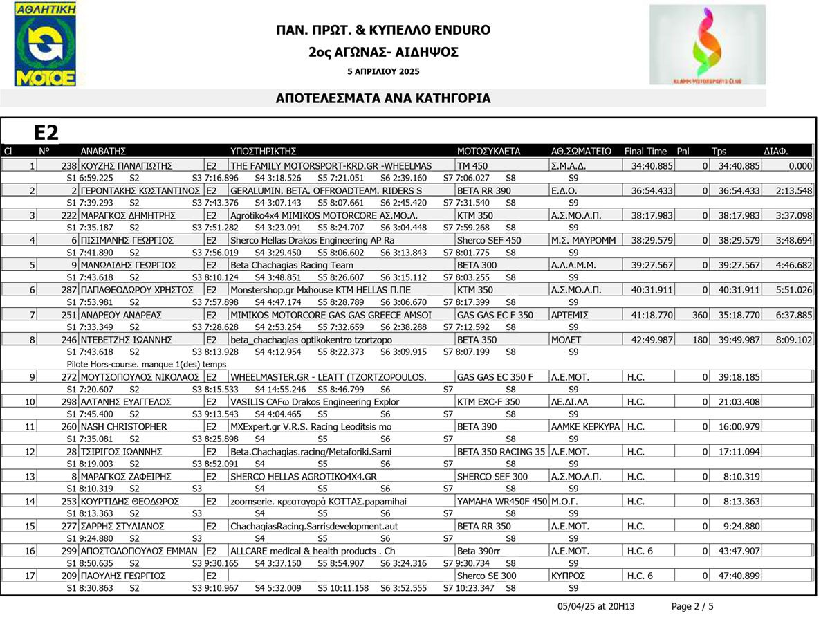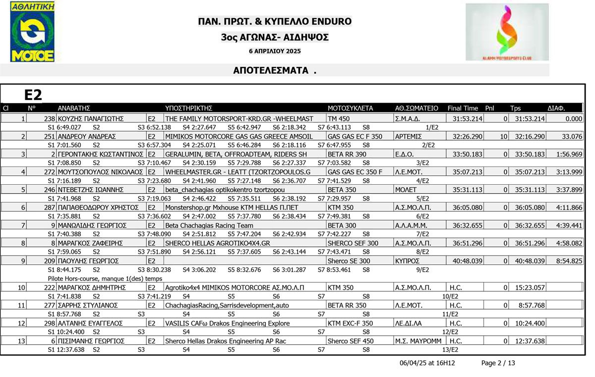 ΑΠΟΤΕΛΕΣΜΑΤΑ: 2ος & 3ος αγώνας Πανελλήνιου Πρωταθλήματος ENDURO και Κυπέλλου 2025 – Εύβοια