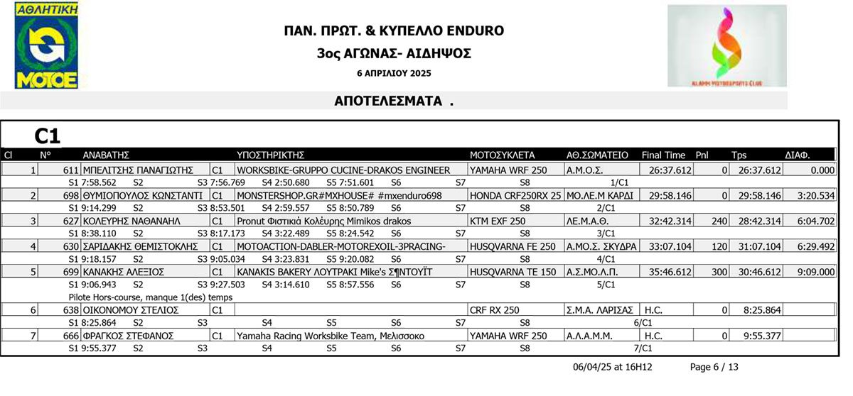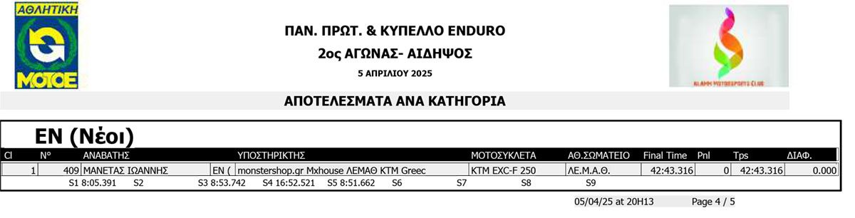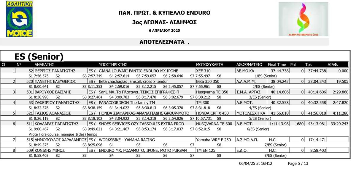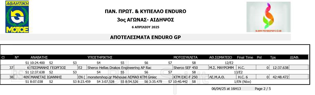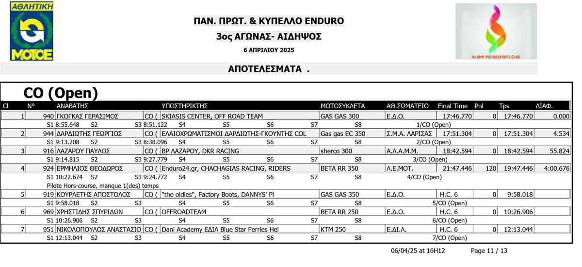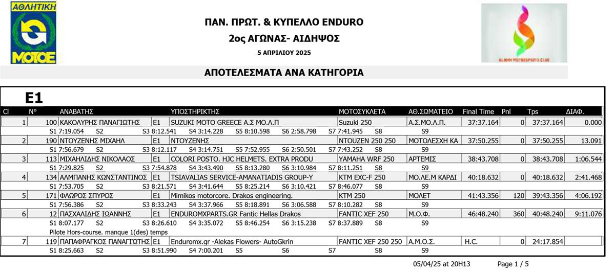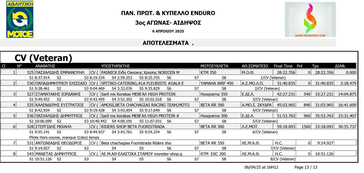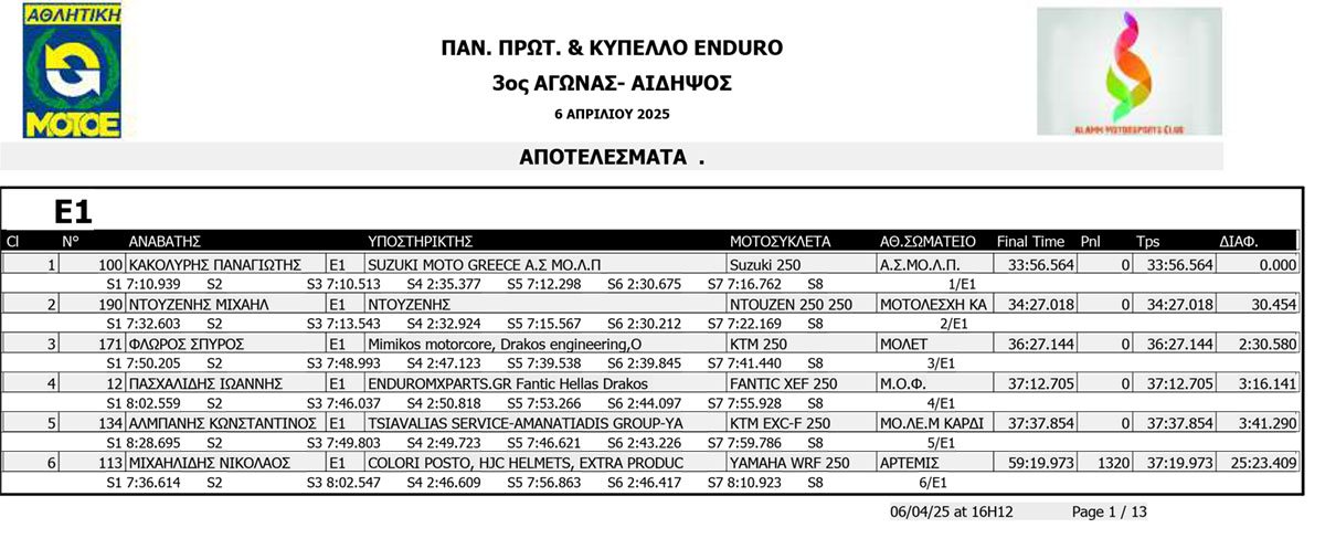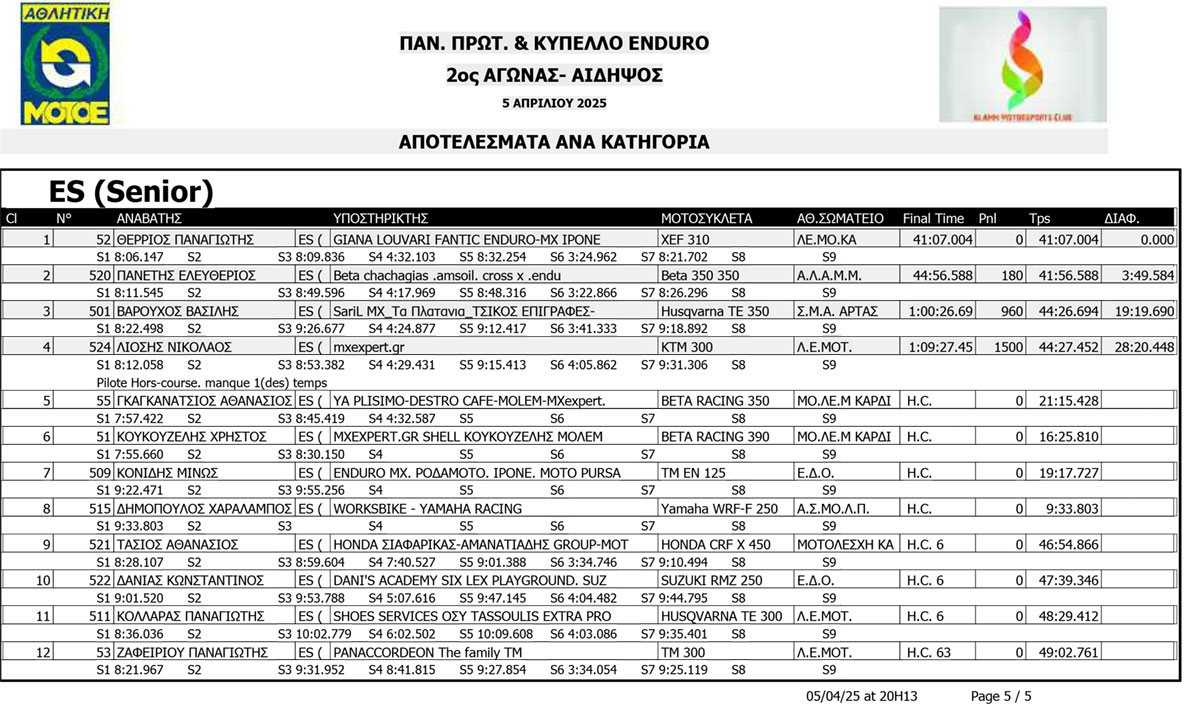 ΑΠΟΤΕΛΕΣΜΑΤΑ: 2ος & 3ος αγώνας Πανελλήνιου Πρωταθλήματος ENDURO και Κυπέλλου 2025 – Εύβοια