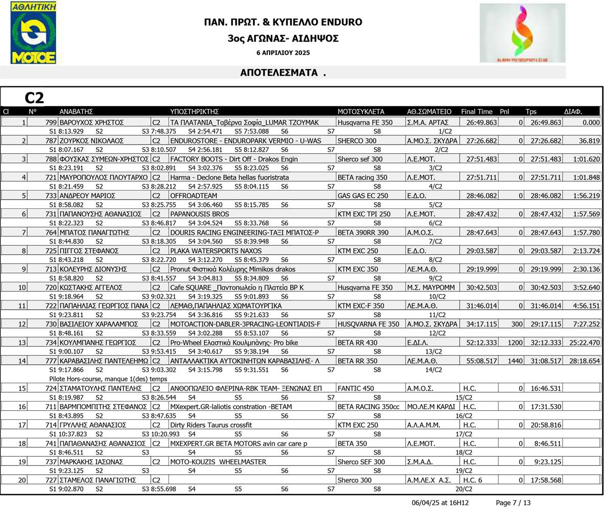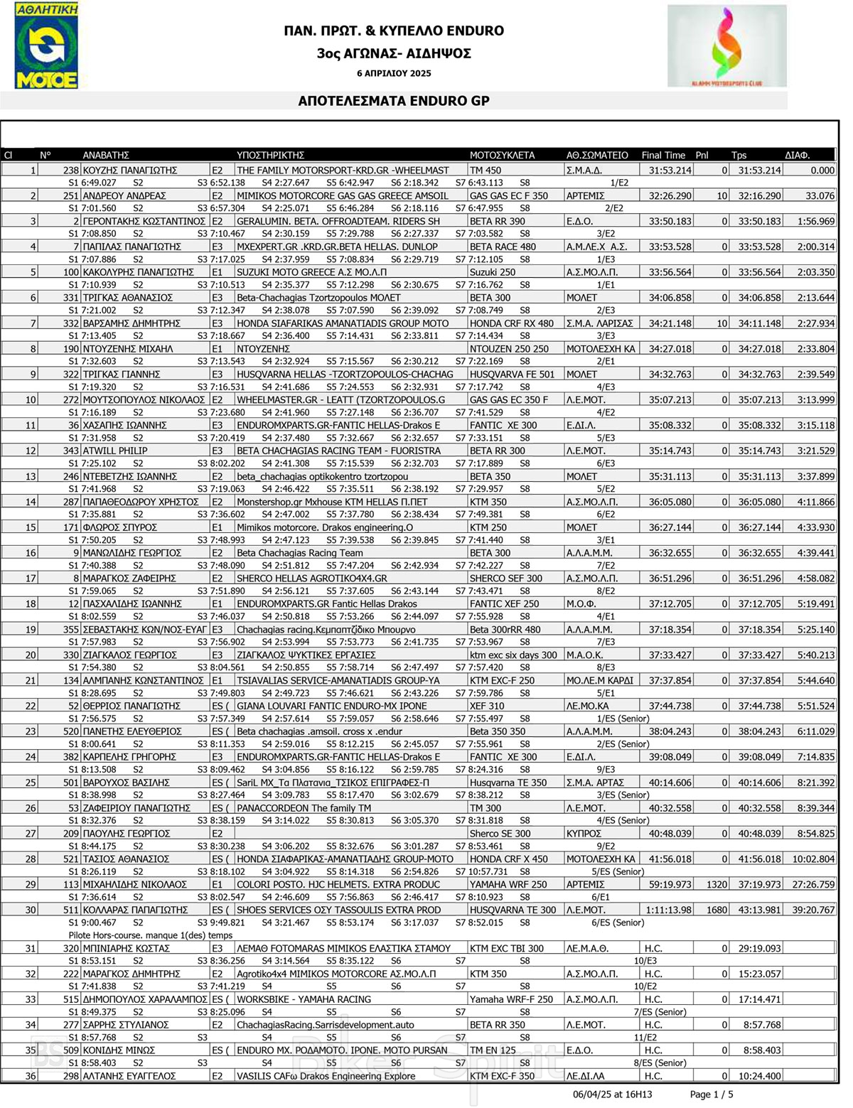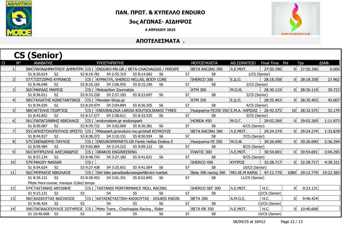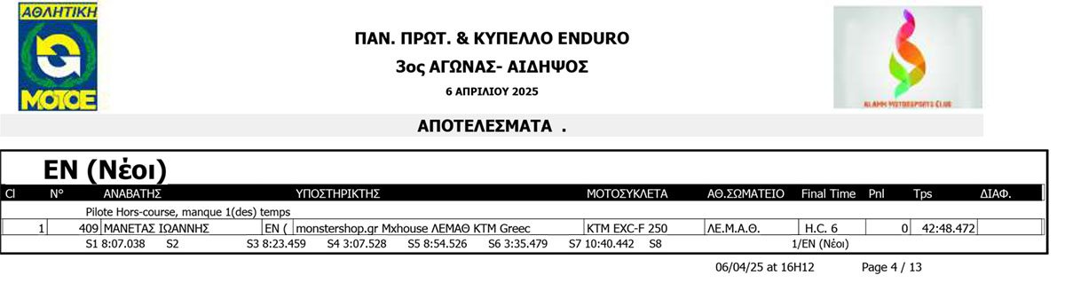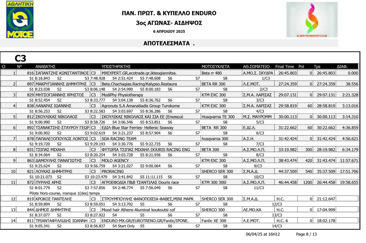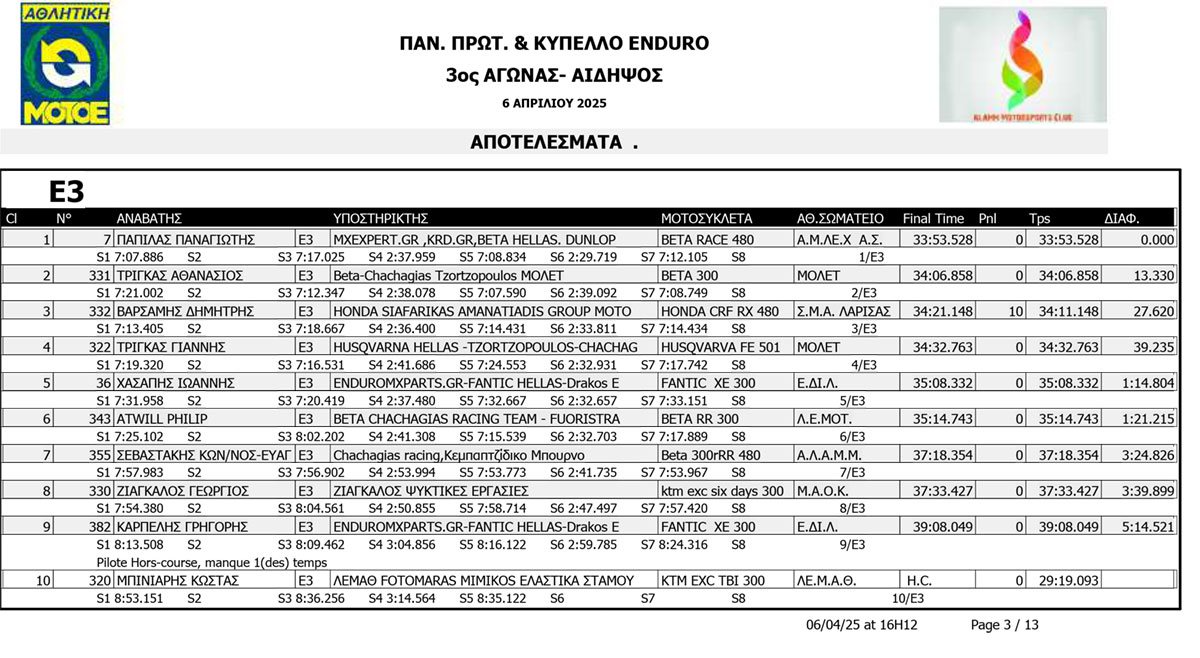 ΑΠΟΤΕΛΕΣΜΑΤΑ: 2ος & 3ος αγώνας Πανελλήνιου Πρωταθλήματος ENDURO και Κυπέλλου 2025 – Εύβοια