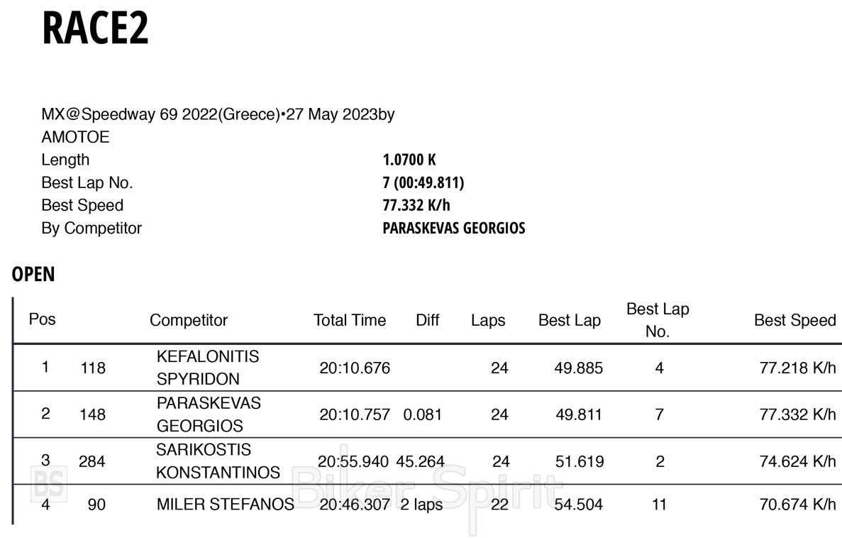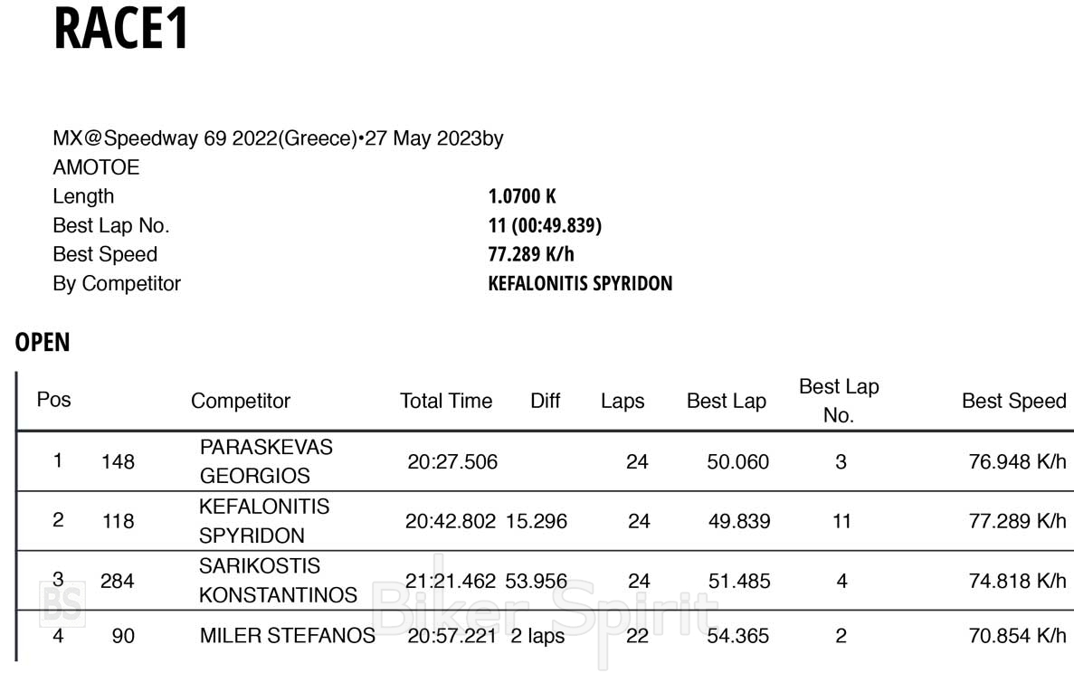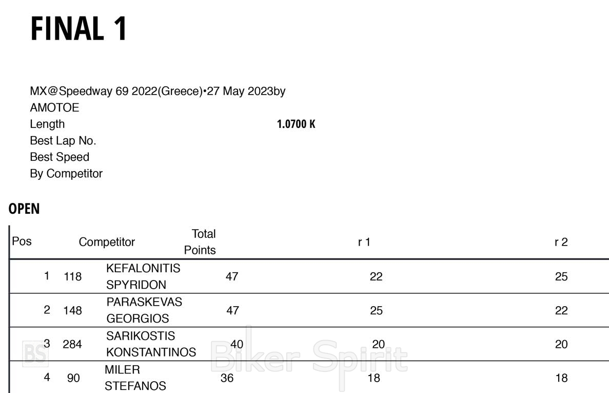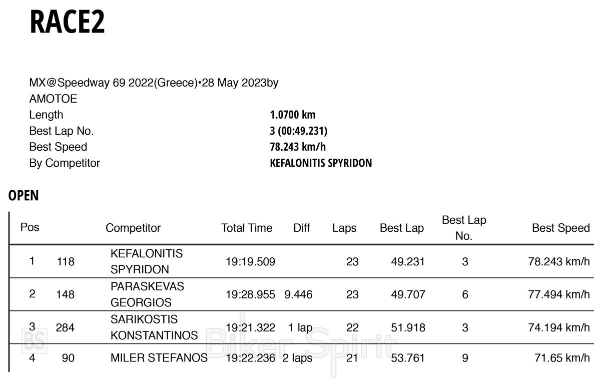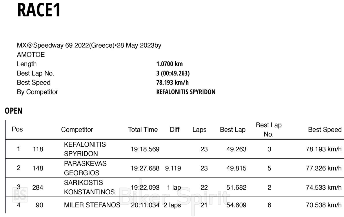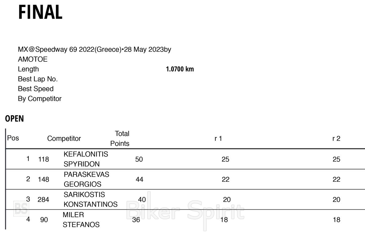 ΑΠΟΤΕΛΕΣΜΑΤΑ 1ου Αγώνα Κυπέλλου SUPERMOTO 2023 στην Σπάρτη στις 30 Απριλίου