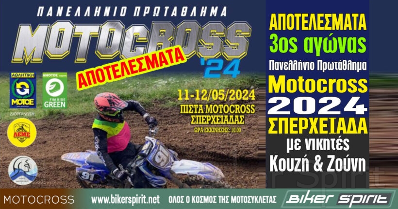 ΑΠΟΤΕΛΕΣΜΑΤΑ 3ος αγώνας Πανελλήνιο Πρωτάθλημα Motocross 2024 στην ΣΠΕΡΧΕΙΑΔΑ με νικητές Κουζή & Ζούνη