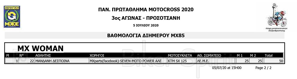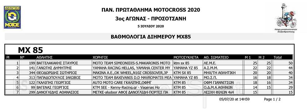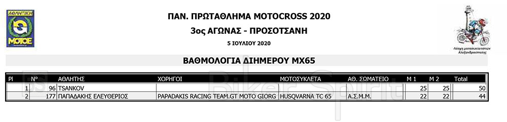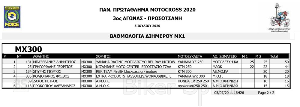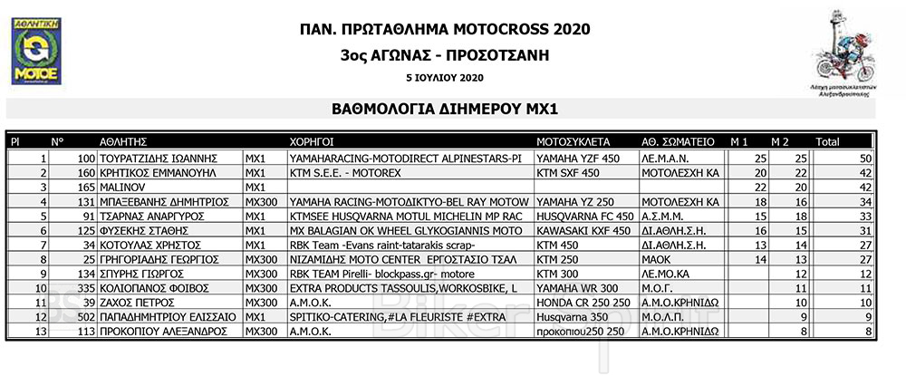 Στην ΜΧ300 νικητής ήταν ο Δημήτρης Μπαξεβάνης, ενώ στις μικρές κατηγορίες νικητής ήταν ο TOSHEV VENCISLAV στην ΜΧ65, και ο Σταύρος Βαγγελάκης στην ΜΧ85.