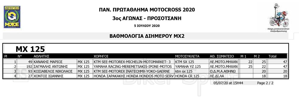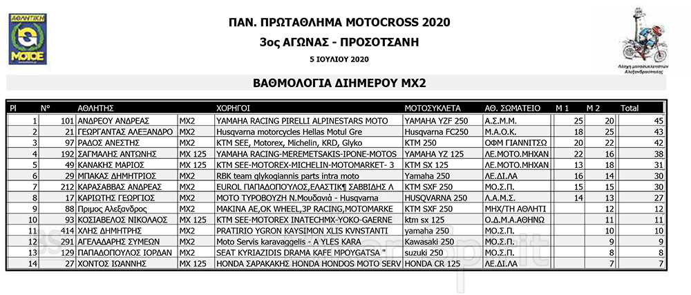 Σήμερα Κυριακή 5 Ιουλίου 2020, ολοκληρώθηκε ο 3ος αγώνας της σεζόν 2020, για το πανελλήνιο πρωτάθλημα Motocross, που έγινε στην νέα πίστα στην Προσοτσάνη Δράμας.