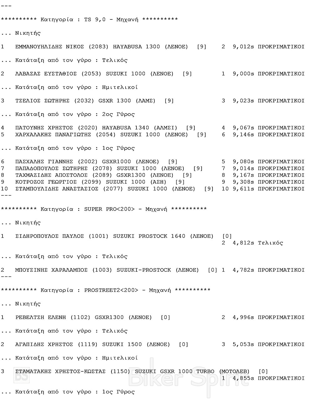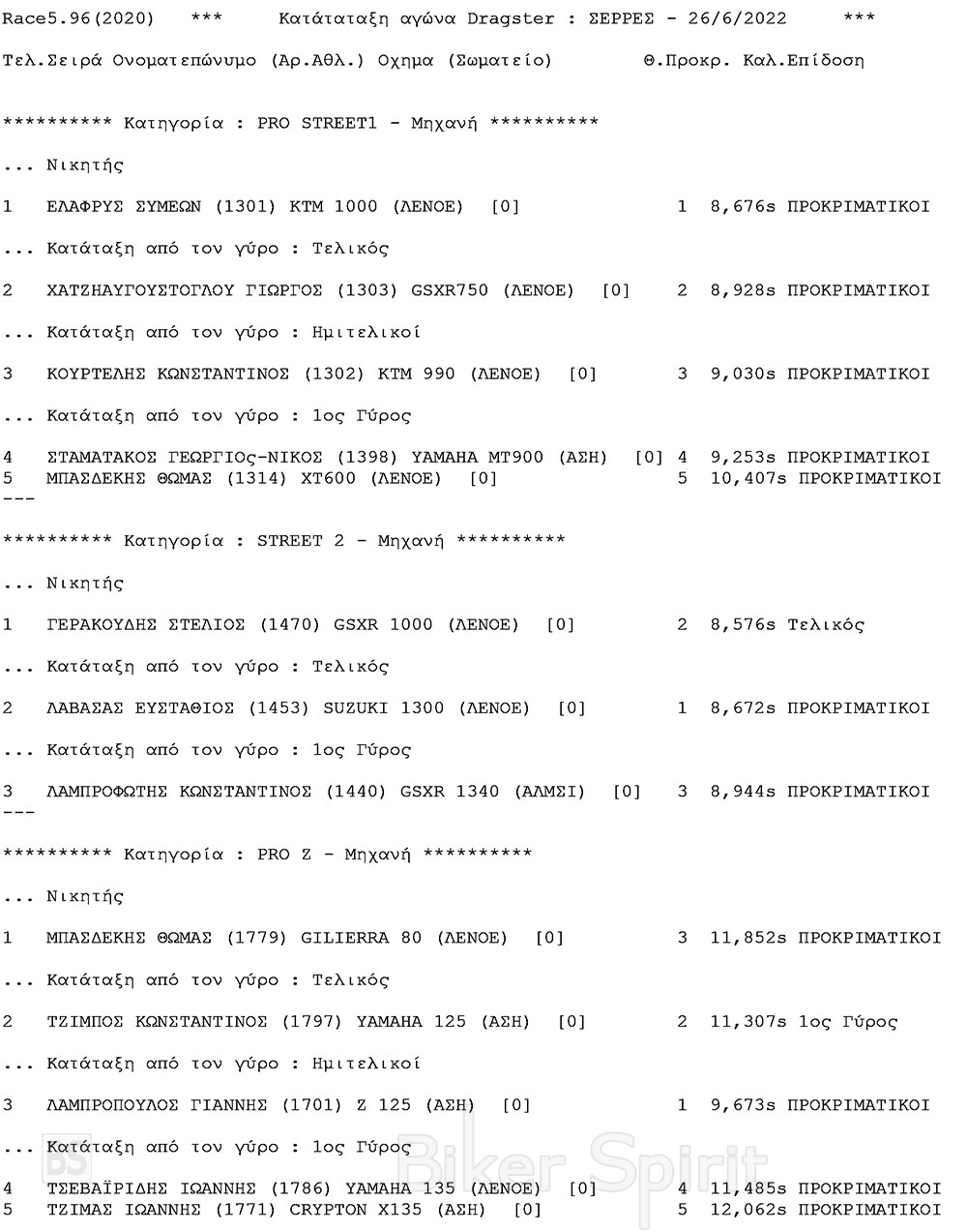 ΑΠΟΤΕΛΕΣΜΑΤΑ 3ου Αγώνα Πανελληνίου Πρωταθλήματός Μοτοσυκλετών DRAGSTER – Σέρρες – 24-25-26/06/2022