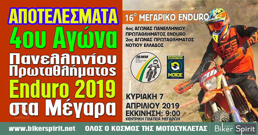 ΑΠΟΤΕΛΕΣΜΑΤΑ 4ου Αγώνα Πανελληνίου Πρωταθλήματος Enduro 2019 στα Μέγαρα