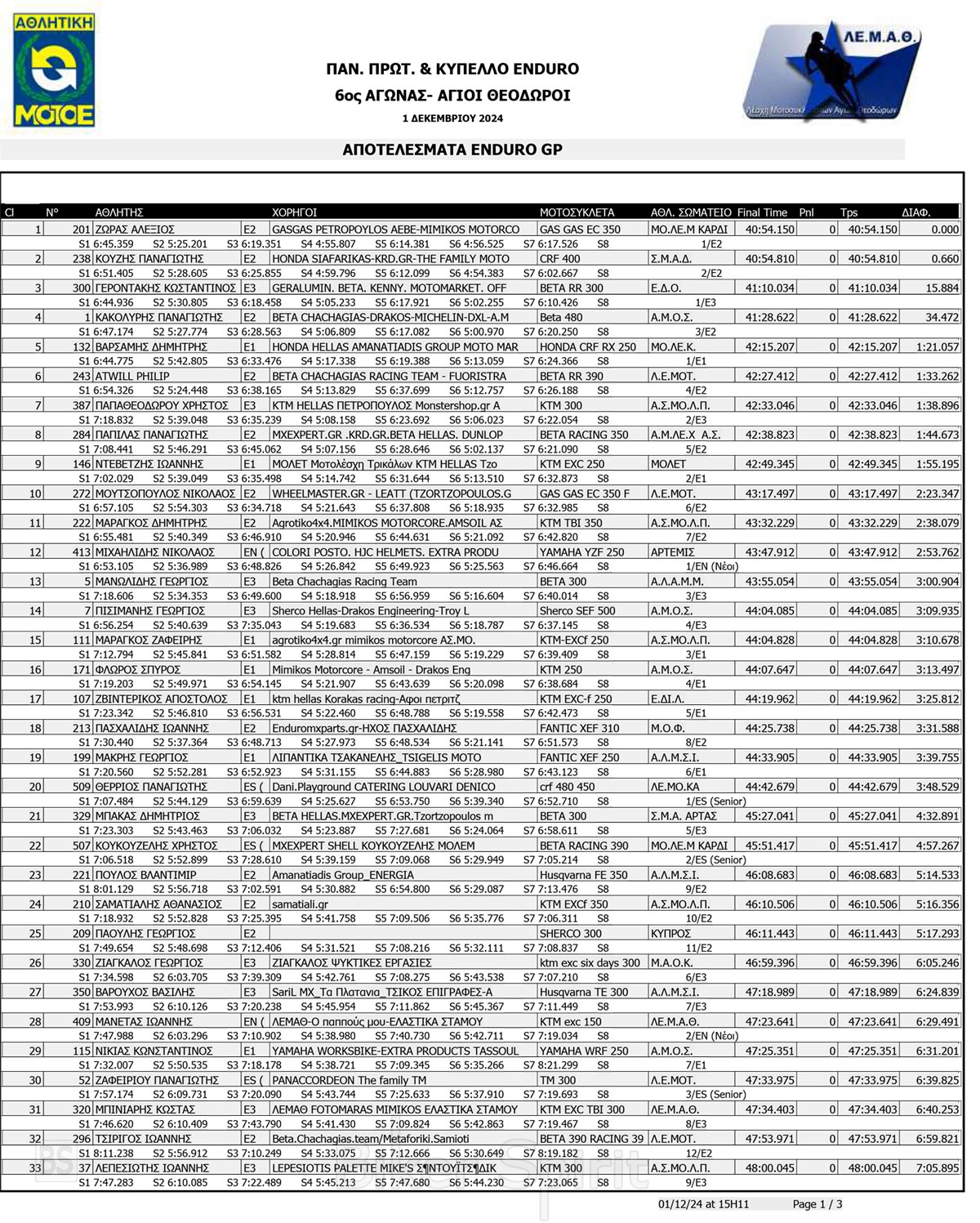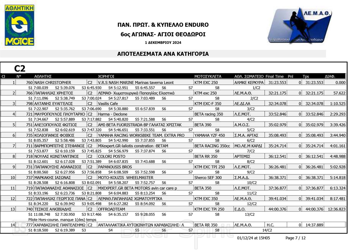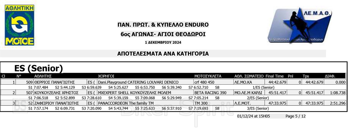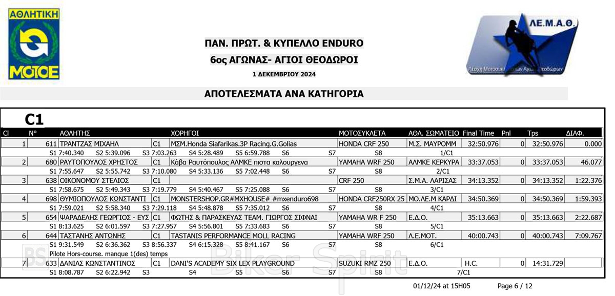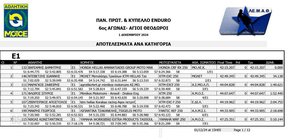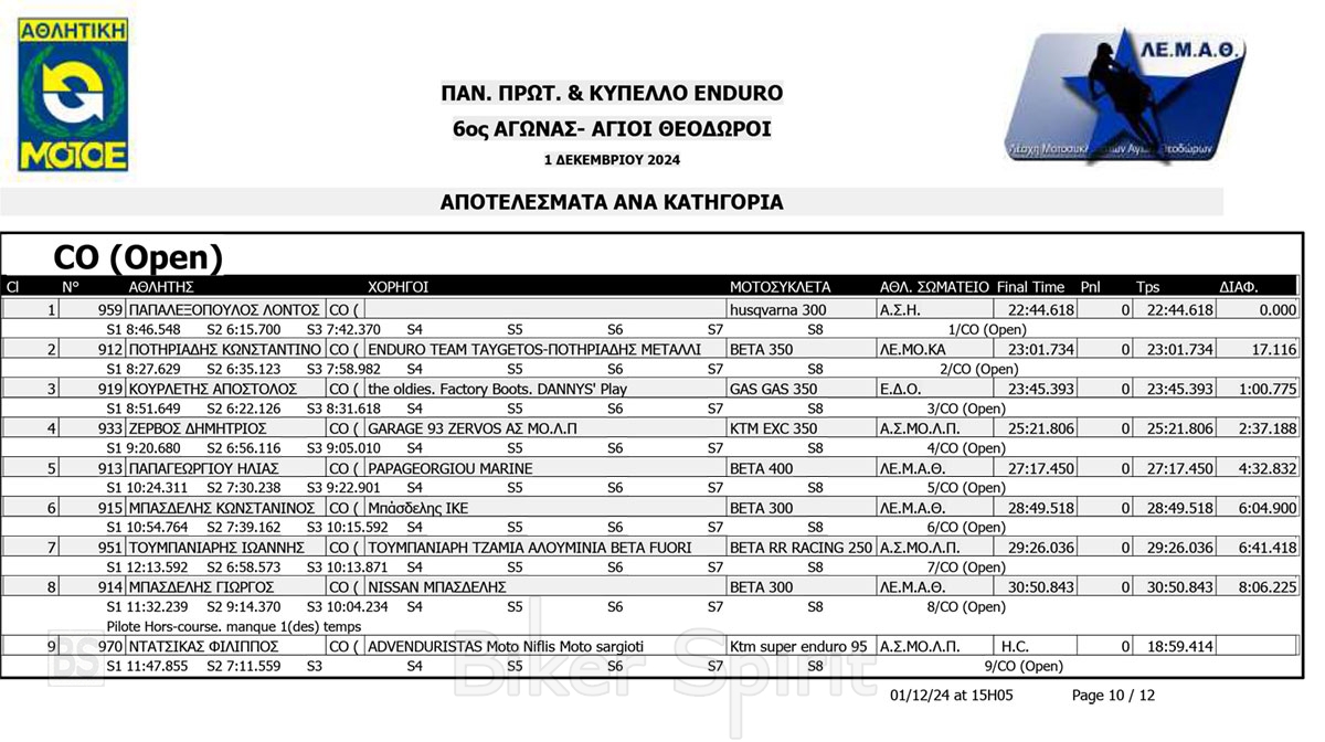 ΑΠΟΤΕΛΕΣΜΑΤΑ 2ος-3ος Αγώνας Πανελλήνιο Πρωτάθλημα ENDURO και ΚΥΠΕΛΛΟ ENDURO 2024 – Σπάρτη