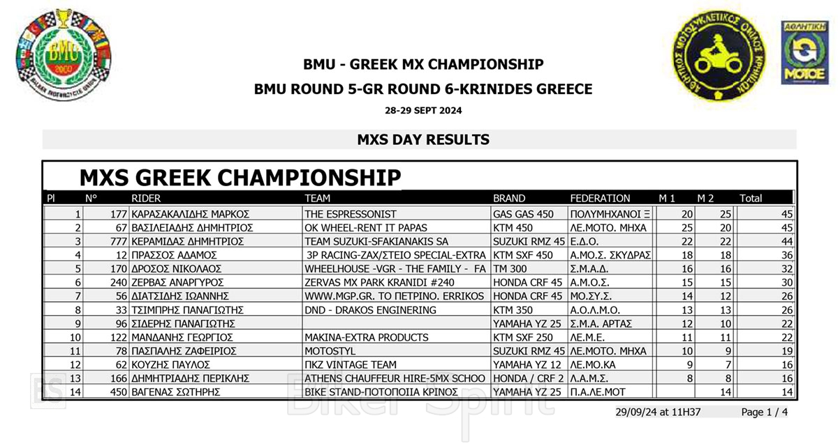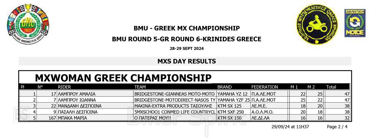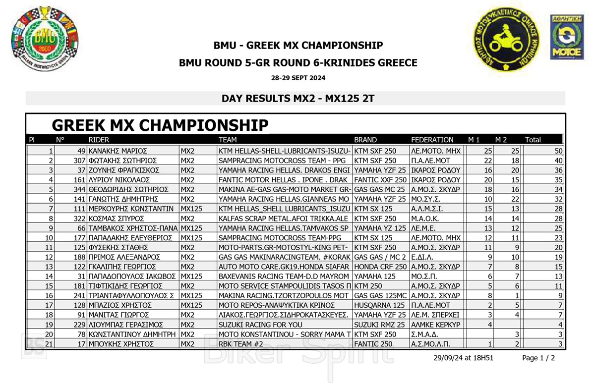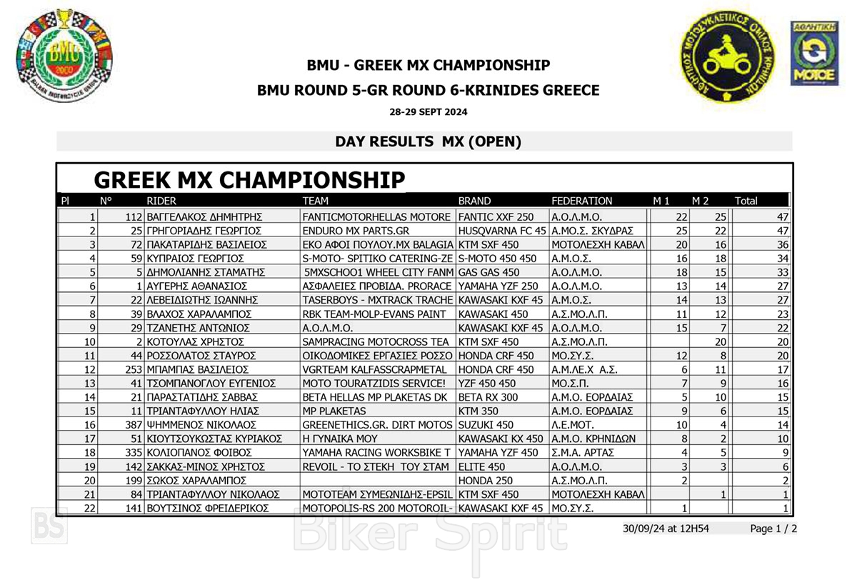 ΑΠΟΤΕΛΕΣΜΑΤΑ 6ος αγώνας Πανελλήνιο Πρωτάθλημα Motocross 2024 και 5ος Βαλκανικου στις Κρηνίδες της Καβάλας με νικητές Κουζή & Κανάκη