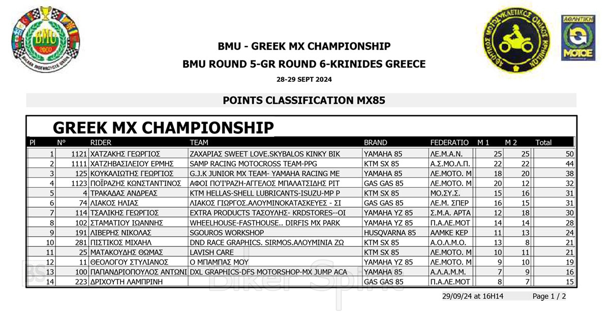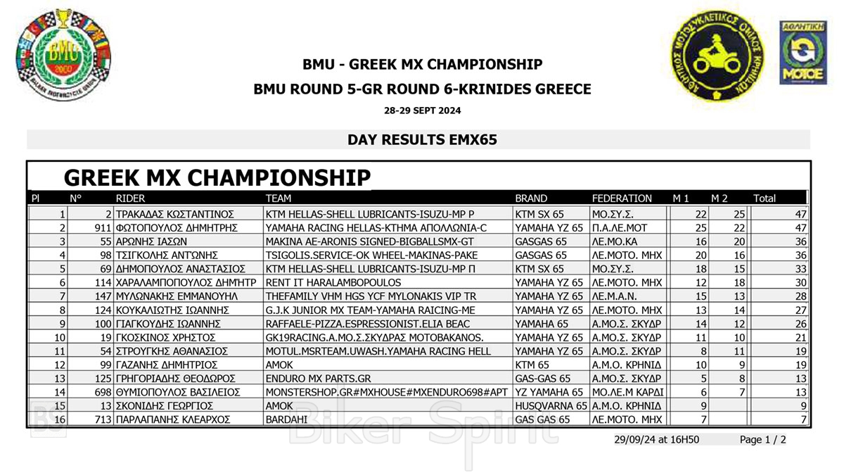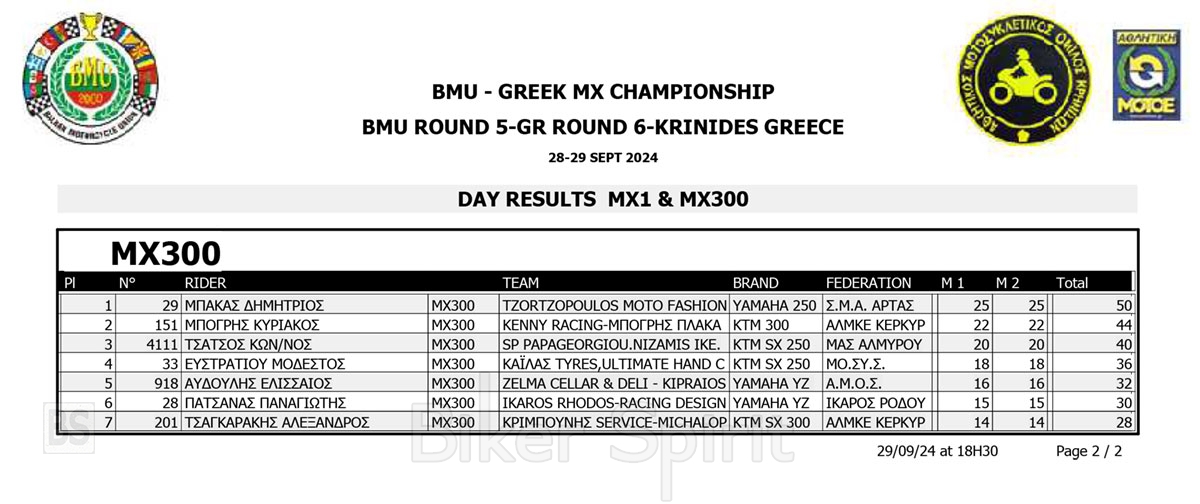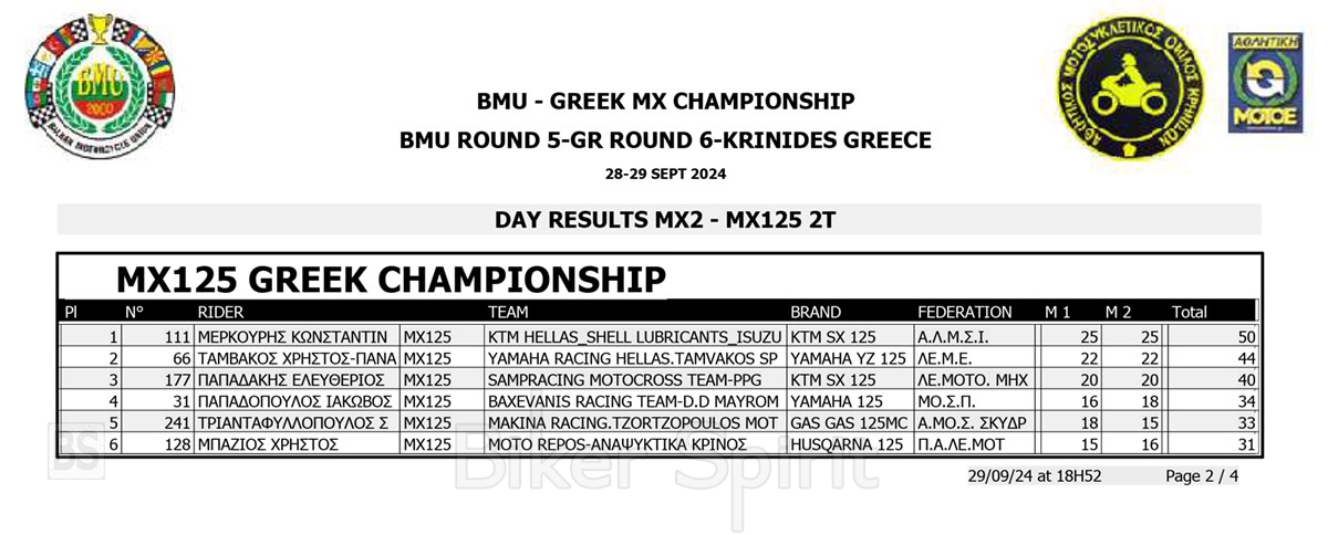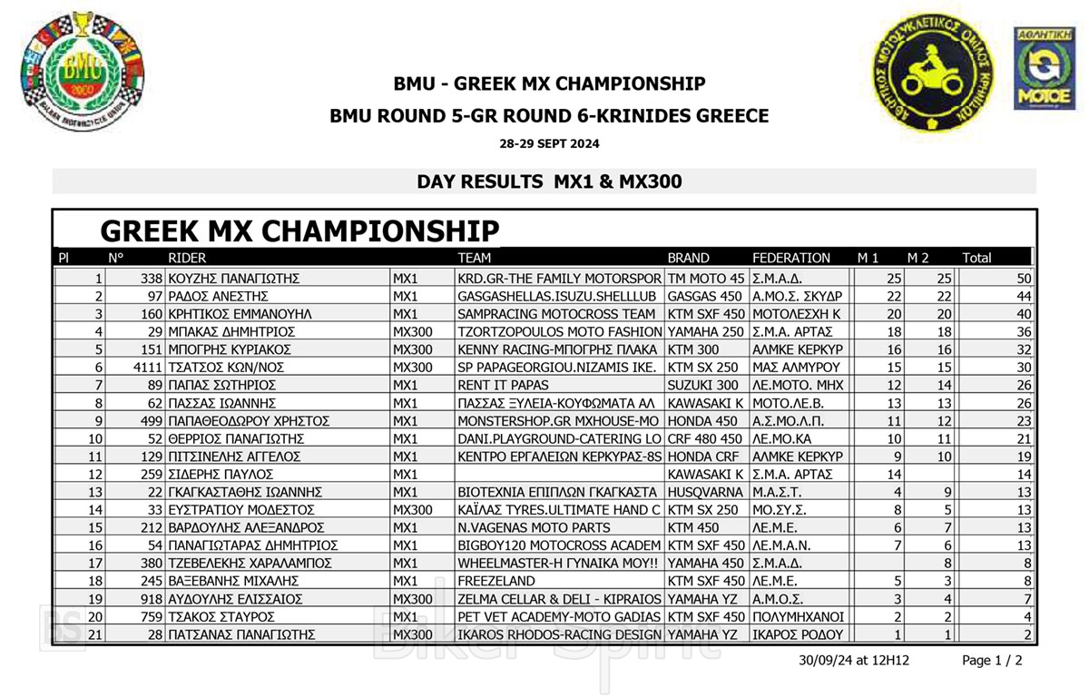 ΑΠΟΤΕΛΕΣΜΑΤΑ 6ος αγώνας Πανελλήνιο Πρωτάθλημα Motocross 2024 και 5ος Βαλκανικου στις Κρηνίδες της Καβάλας με νικητές Κουζή & Κανάκη