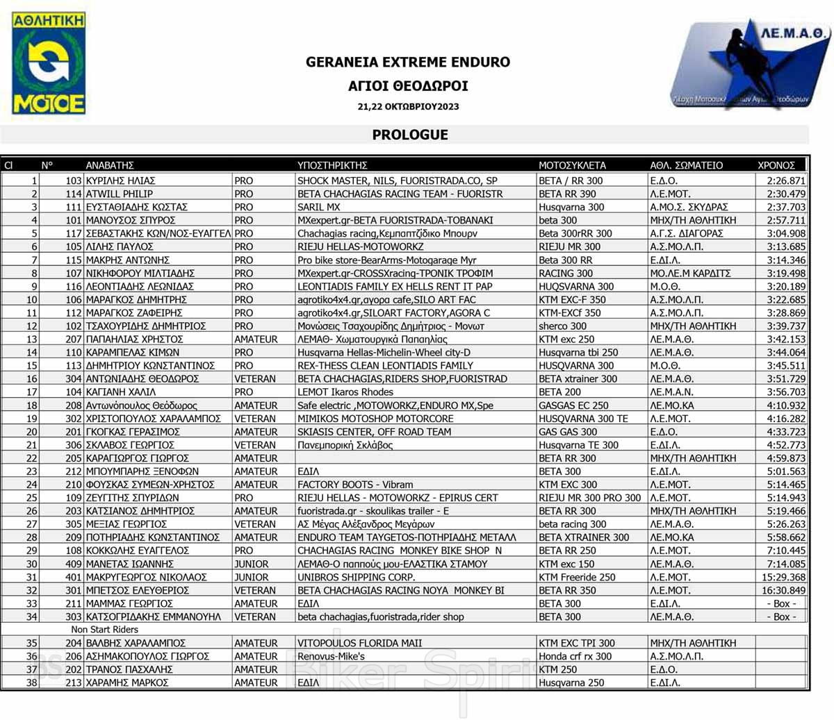 ΑΠΟΤΕΛΕΣΜΑΤΑ 6ου Αγώνα Πανελληνίου Πρωταθλήματος ENDURO και 3ου Αγώνα Κυπέλλου Νοτίου Ελλάδας για το 2023 – Αγ. Θεόδωροι