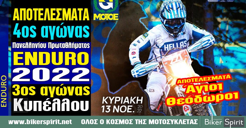 ΑΠΟΤΕΛΕΣΜΑΤΑ του 4ου αγώνα Πανελληνίου Πρωταθλήματος και του 3ου του Κυπέλλου ENDURO 2022 – Άγιοι Θεόδωροι Κορινθίας
