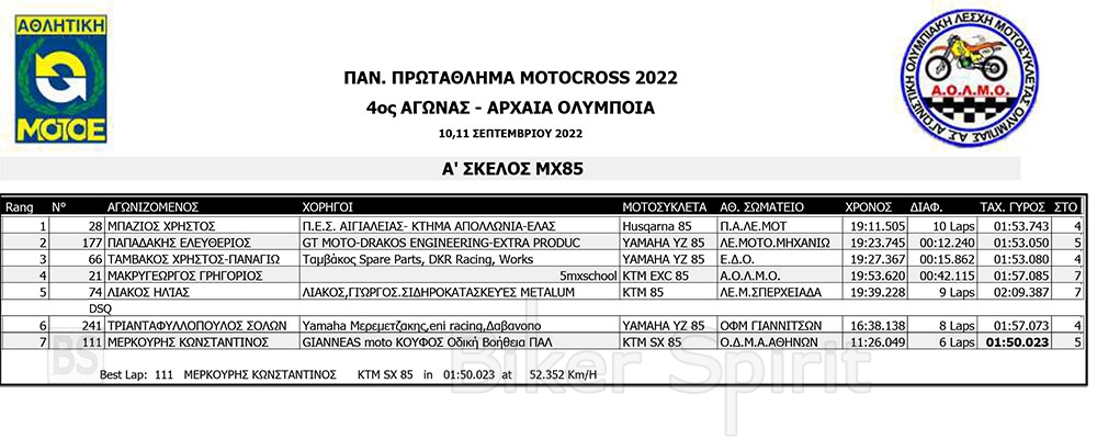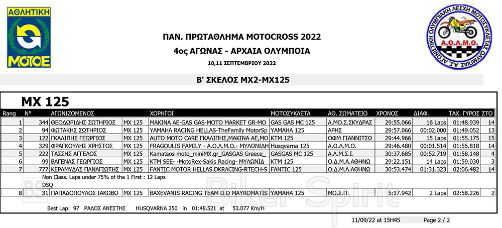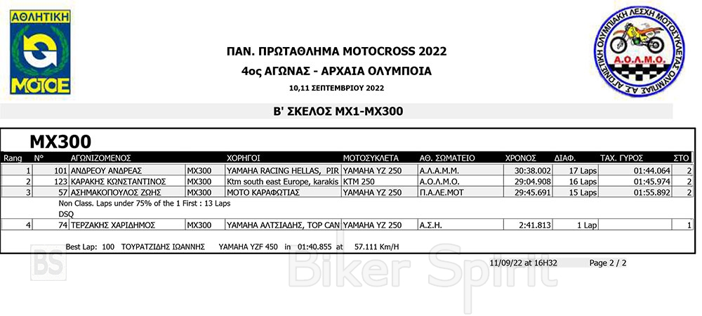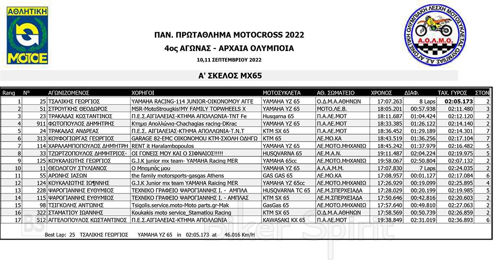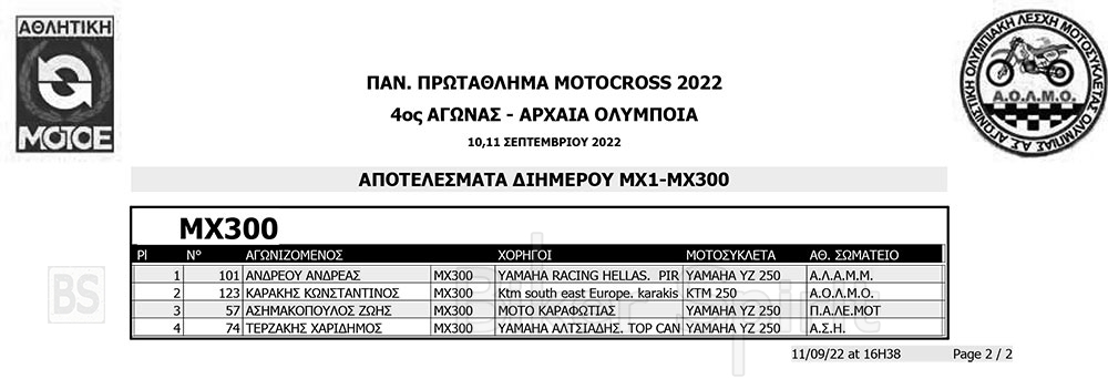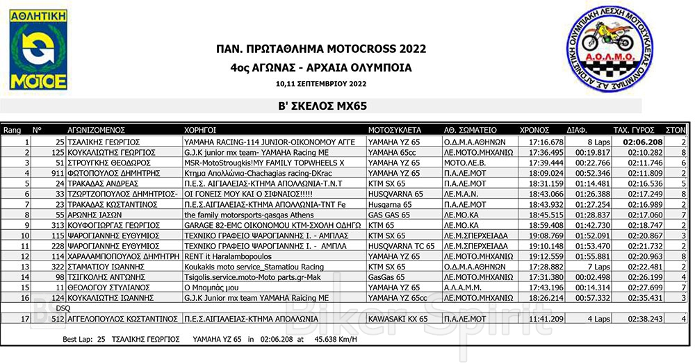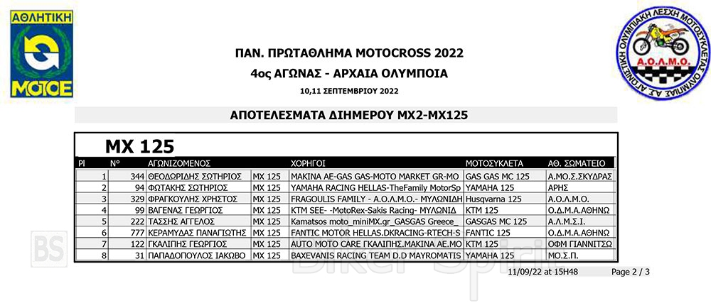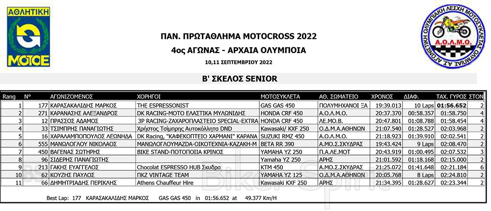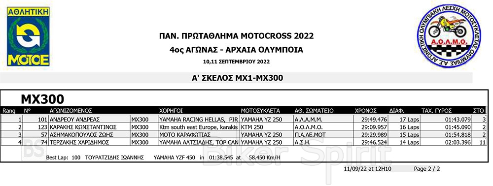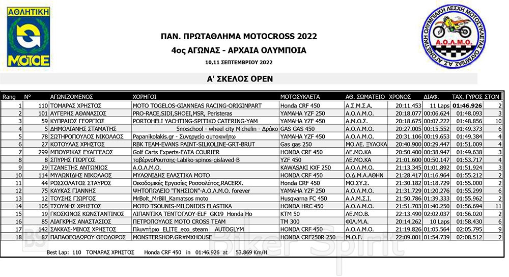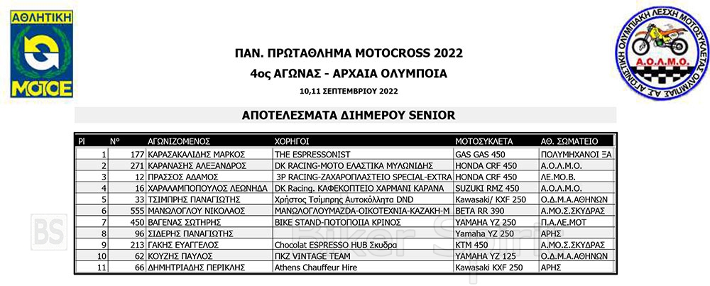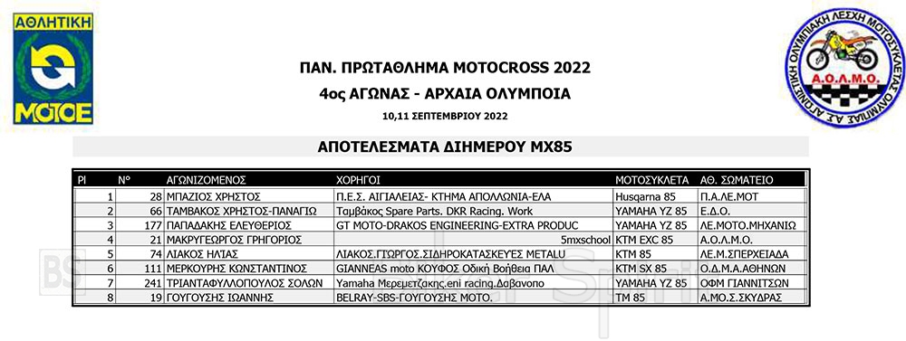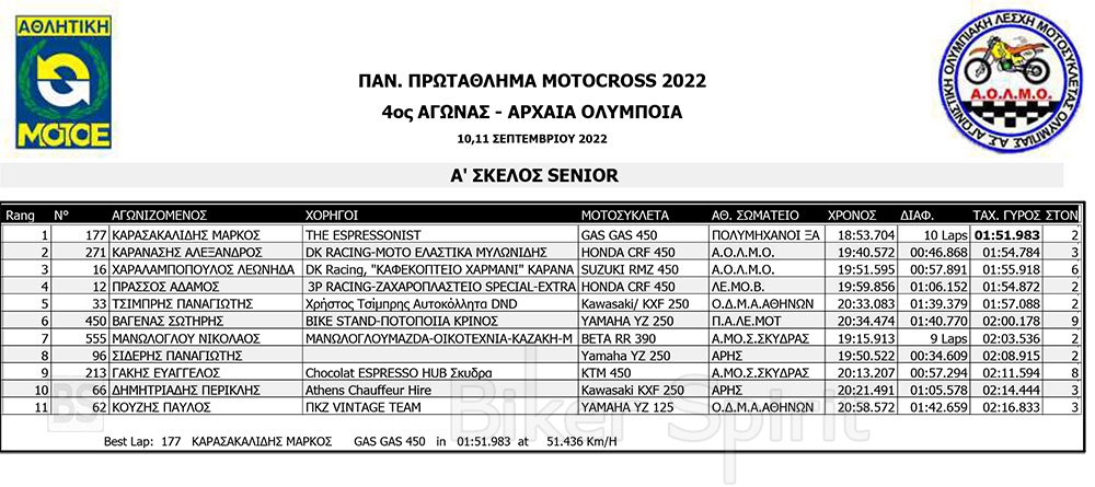 ΑΠΟΤΕΛΕΣΜΑΤΑ του 4ου αγώνα Πανελληνίου Πρωταθλήματος Motocross 2022 – Αρχαία Ολυμπία με νικητές Τουραζίδη και Ράδο