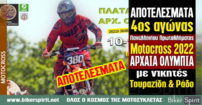 ΑΠΟΤΕΛΕΣΜΑΤΑ του 4ου αγώνα Πανελληνίου Πρωταθλήματος Motocross 2022 – Αρχαία Ολυμπία με νικητές Τουραζίδη και Ράδο