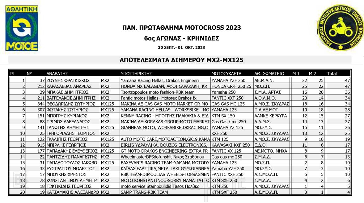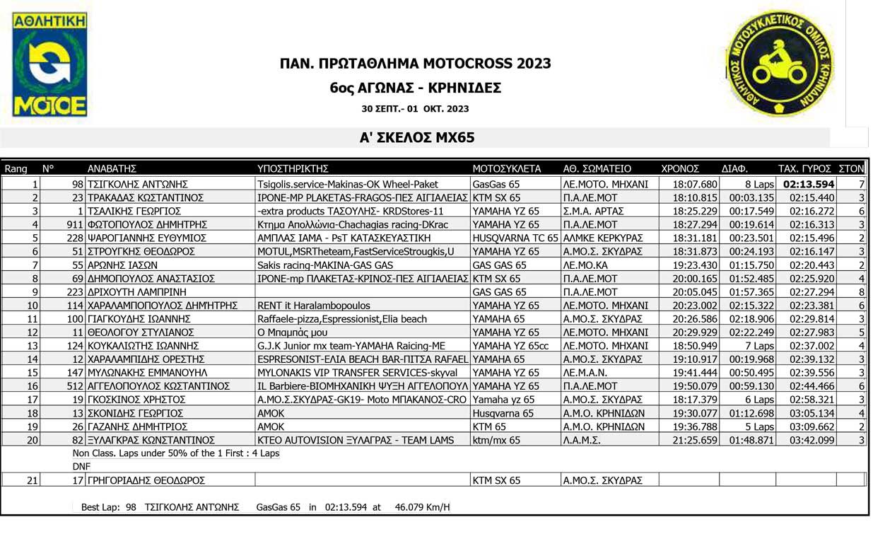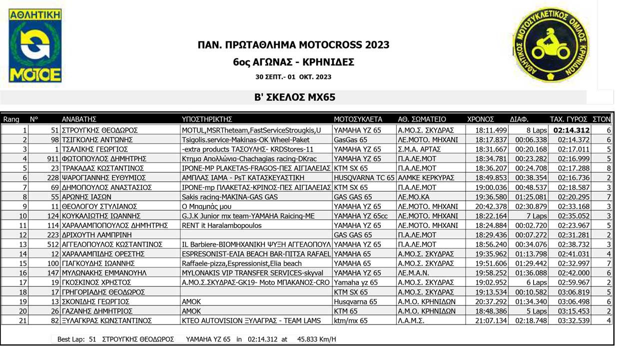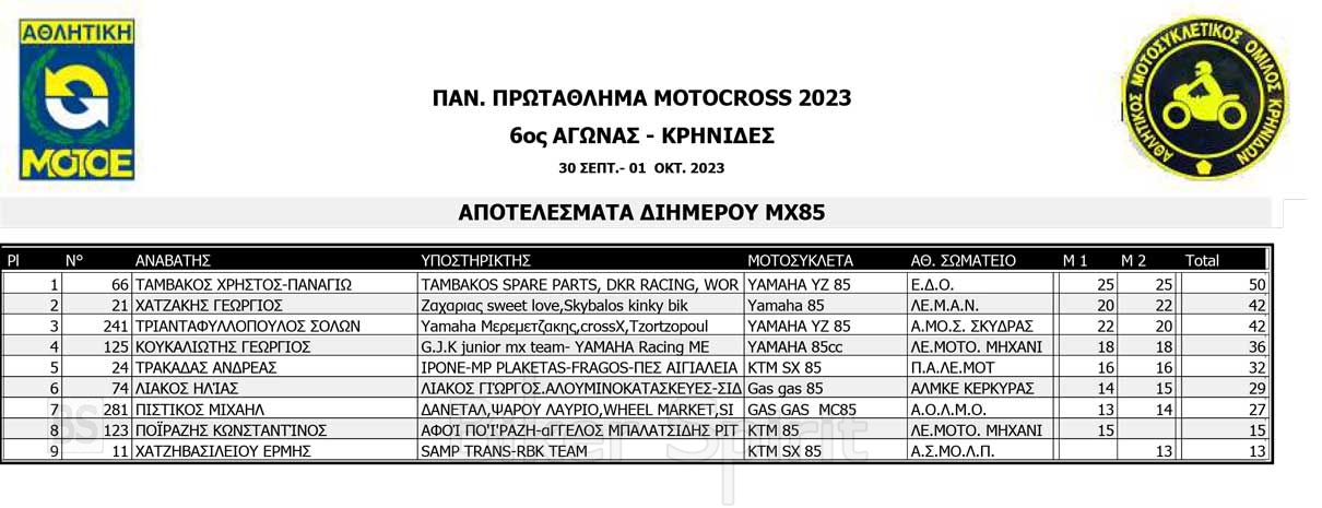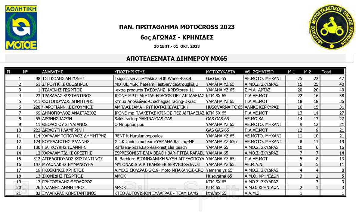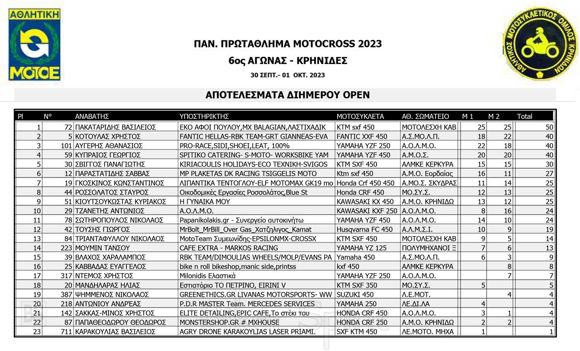 Το Σαββατοκύριακο 30/09 και 01/10/2023 έγινε ο 6ος αγώνας Πανελληνίου Πρωταθλήματος MOTOCROSS στις Κρηνίδες στην Καβάλα με 125 συμμετοχές, που διοργάνωσε το αθλητικό σωματείο ΑΜΟ ΚΡΗΝΙΔΩΝ.