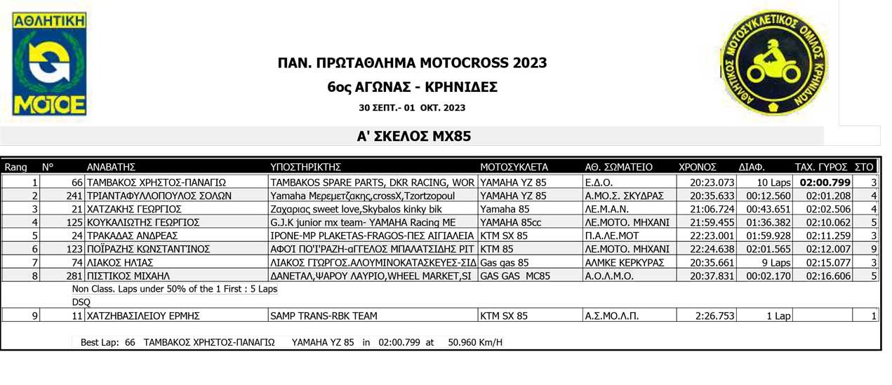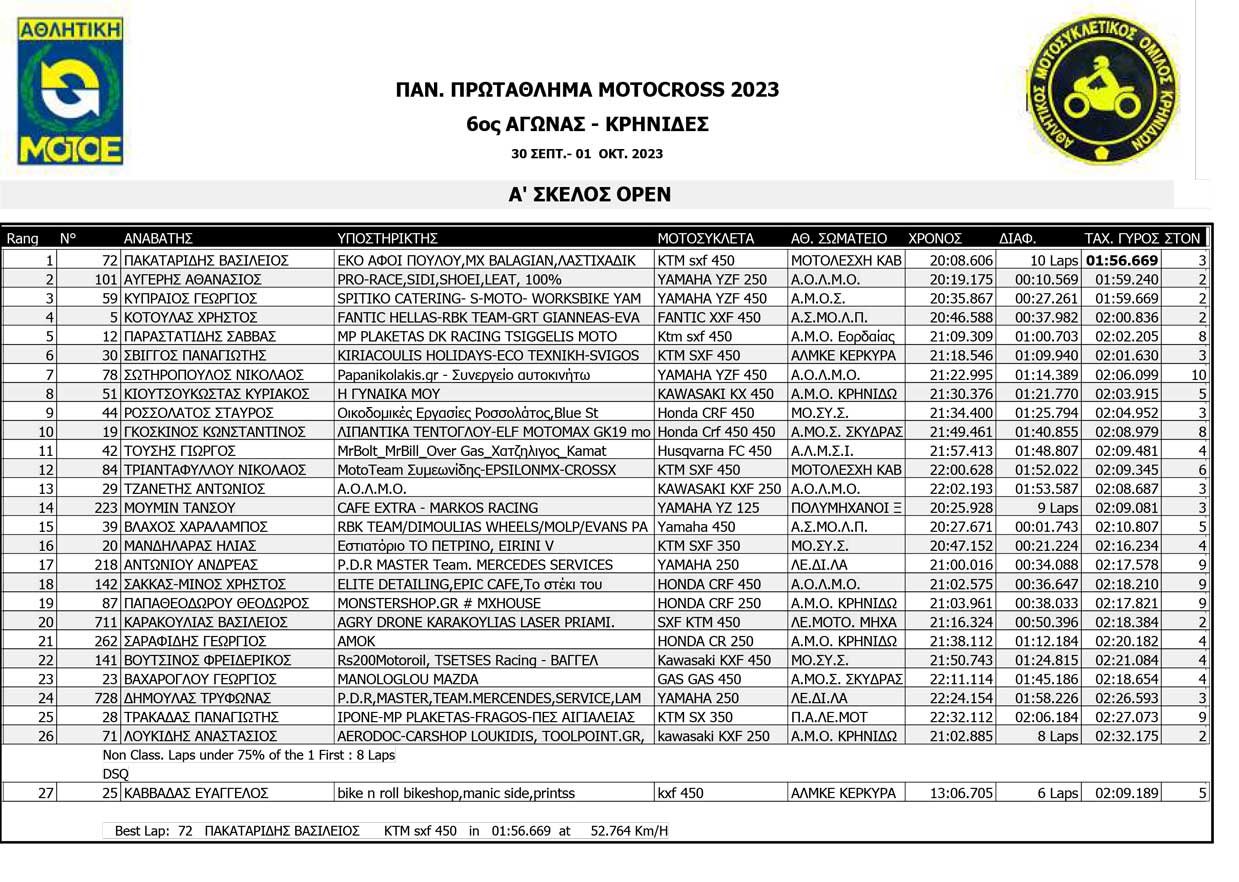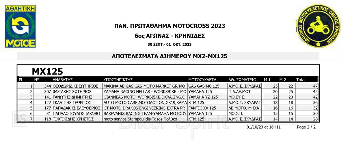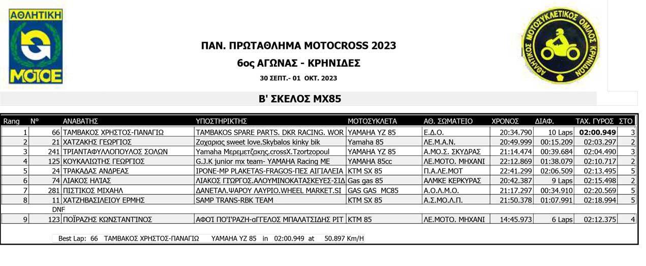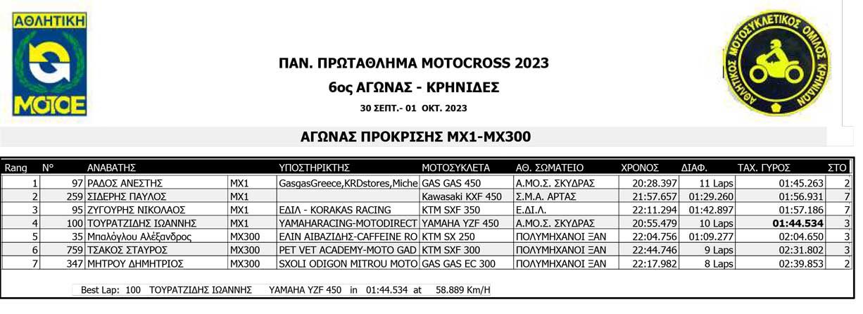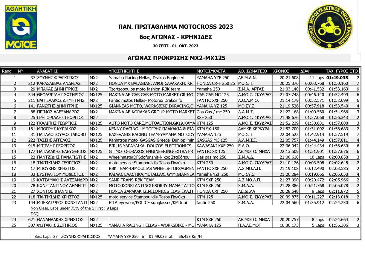 Το Σαββατοκύριακο 30/09 και 01/10/2023 έγινε ο 6ος αγώνας Πανελληνίου Πρωταθλήματος MOTOCROSS στις Κρηνίδες στην Καβάλα με 125 συμμετοχές, που διοργάνωσε το αθλητικό σωματείο ΑΜΟ ΚΡΗΝΙΔΩΝ.