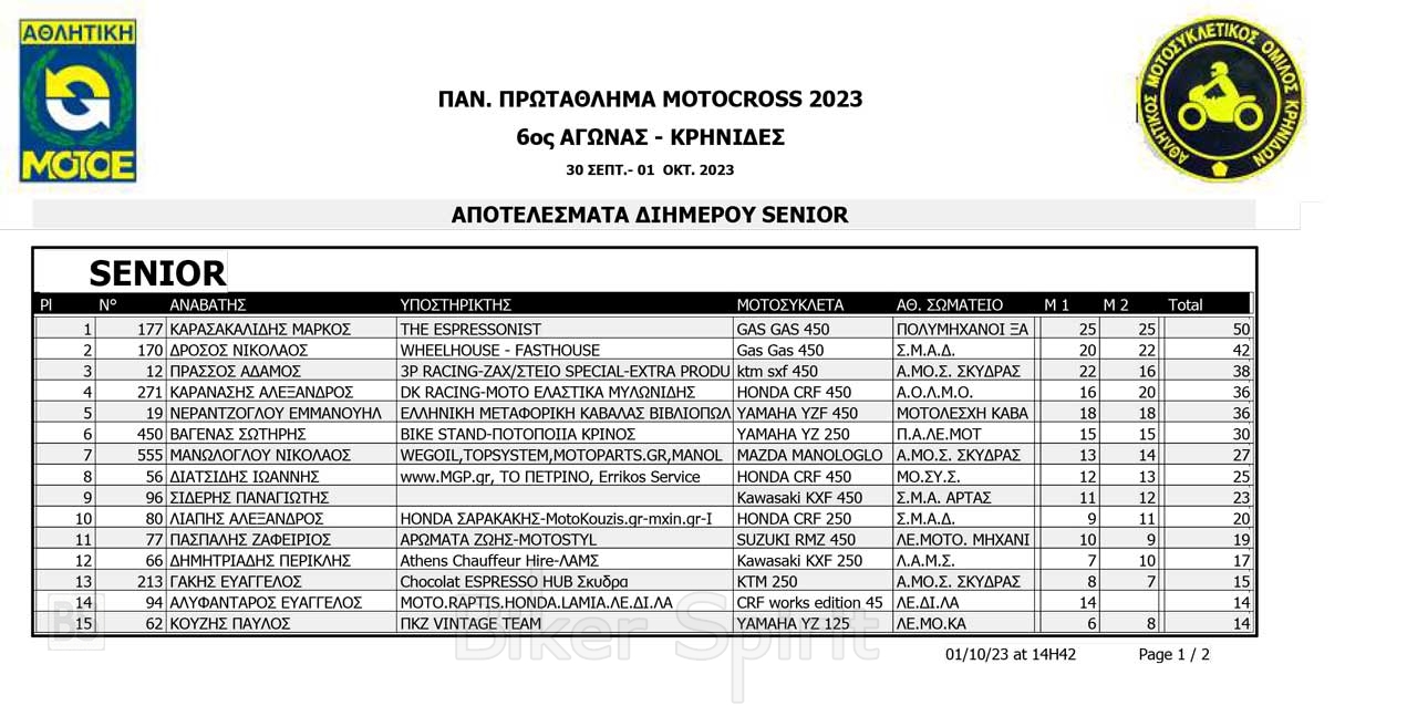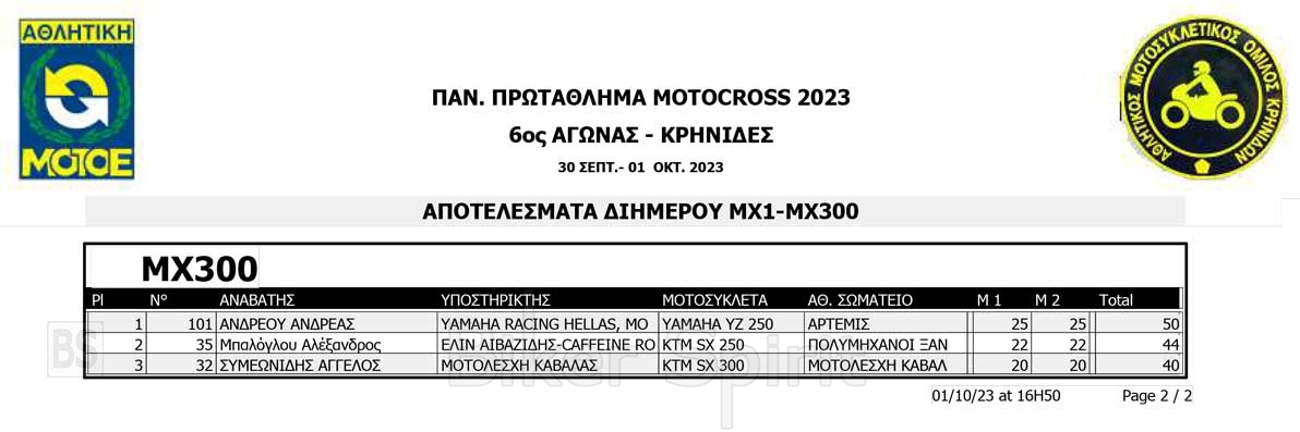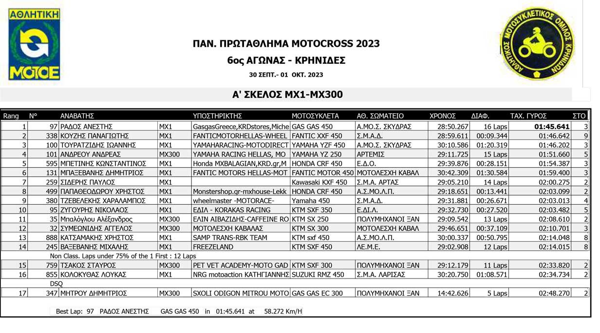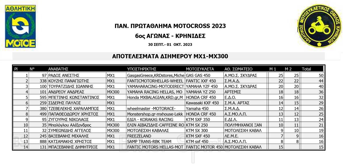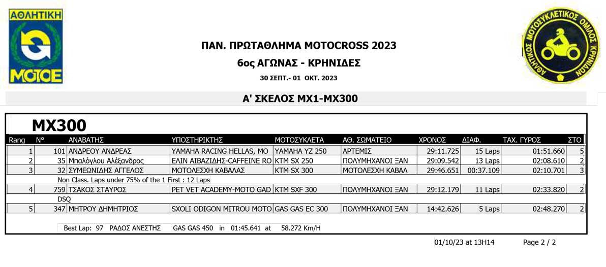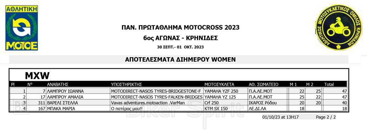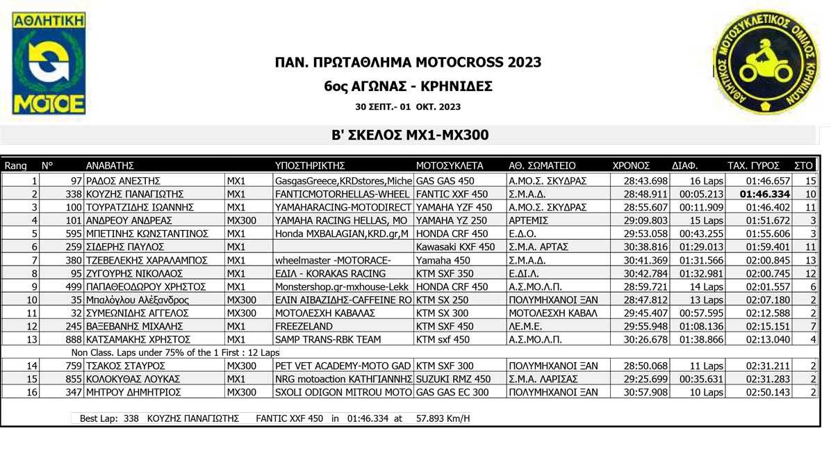 Το Σαββατοκύριακο 30/09 και 01/10/2023 έγινε ο 6ος αγώνας Πανελληνίου Πρωταθλήματος MOTOCROSS στις Κρηνίδες στην Καβάλα με 125 συμμετοχές, που διοργάνωσε το αθλητικό σωματείο ΑΜΟ ΚΡΗΝΙΔΩΝ.