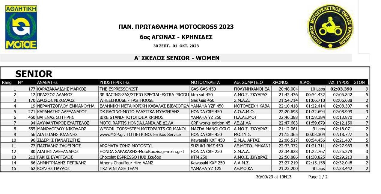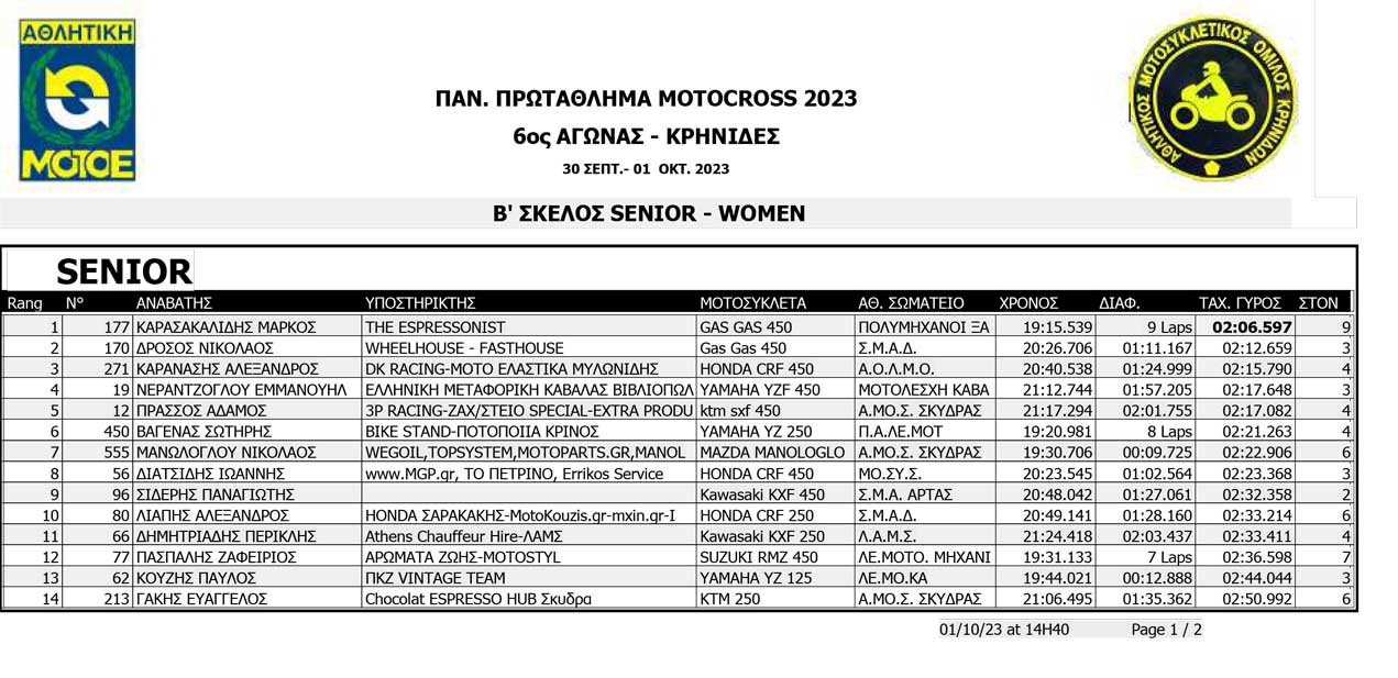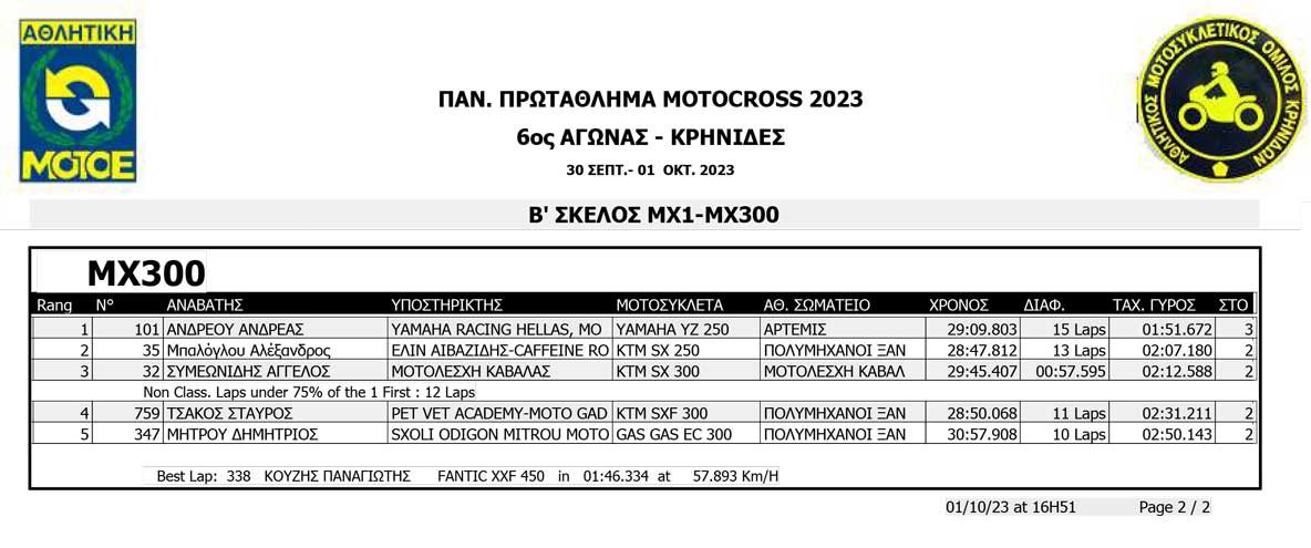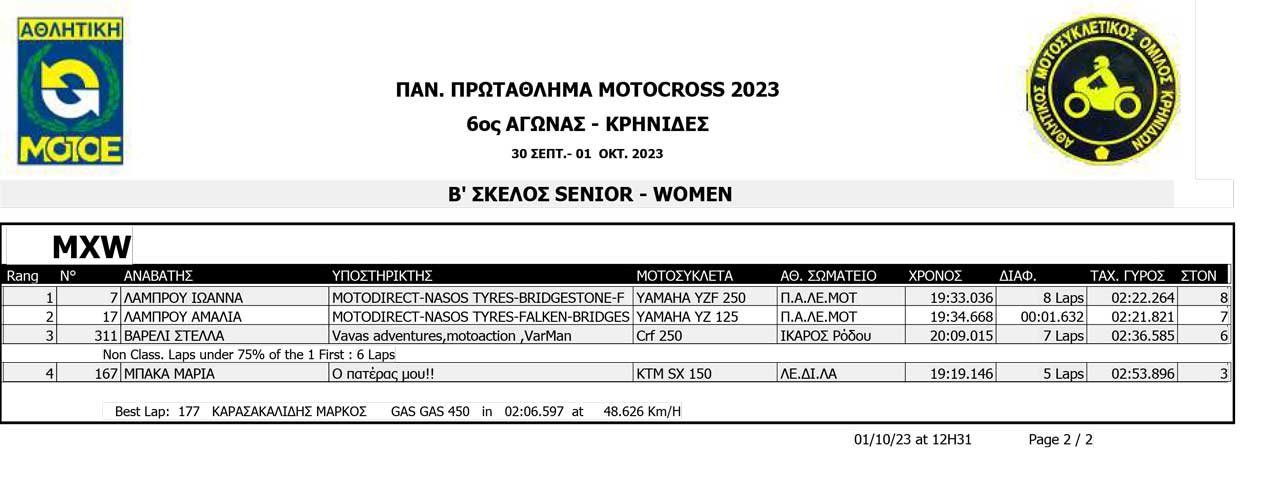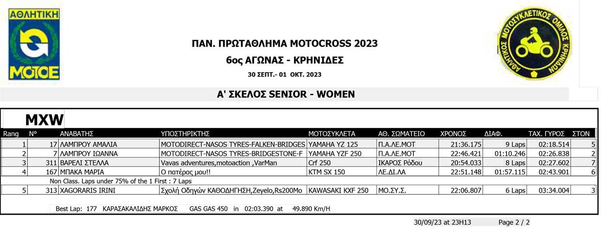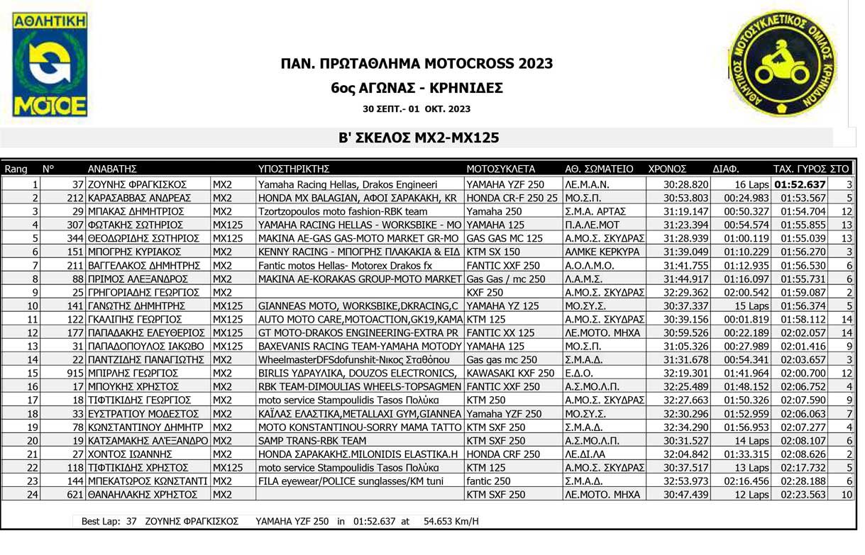Το Σαββατοκύριακο 30/09 και 01/10/2023 έγινε ο 6ος αγώνας Πανελληνίου Πρωταθλήματος MOTOCROSS στις Κρηνίδες στην Καβάλα με 125 συμμετοχές, που διοργάνωσε το αθλητικό σωματείο ΑΜΟ ΚΡΗΝΙΔΩΝ.