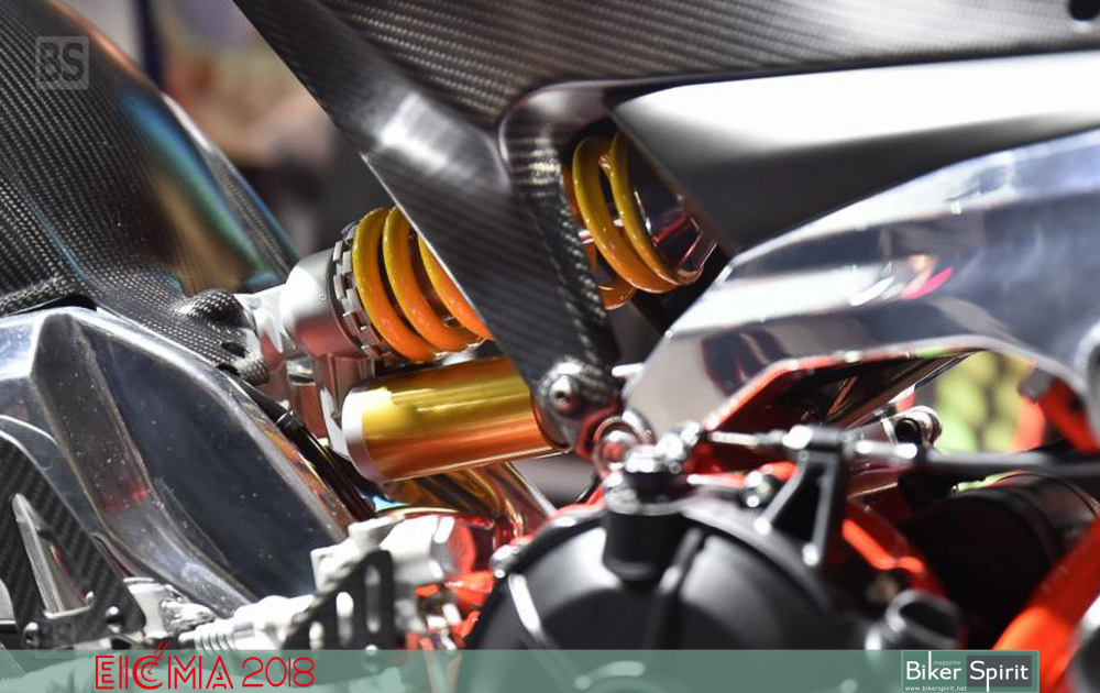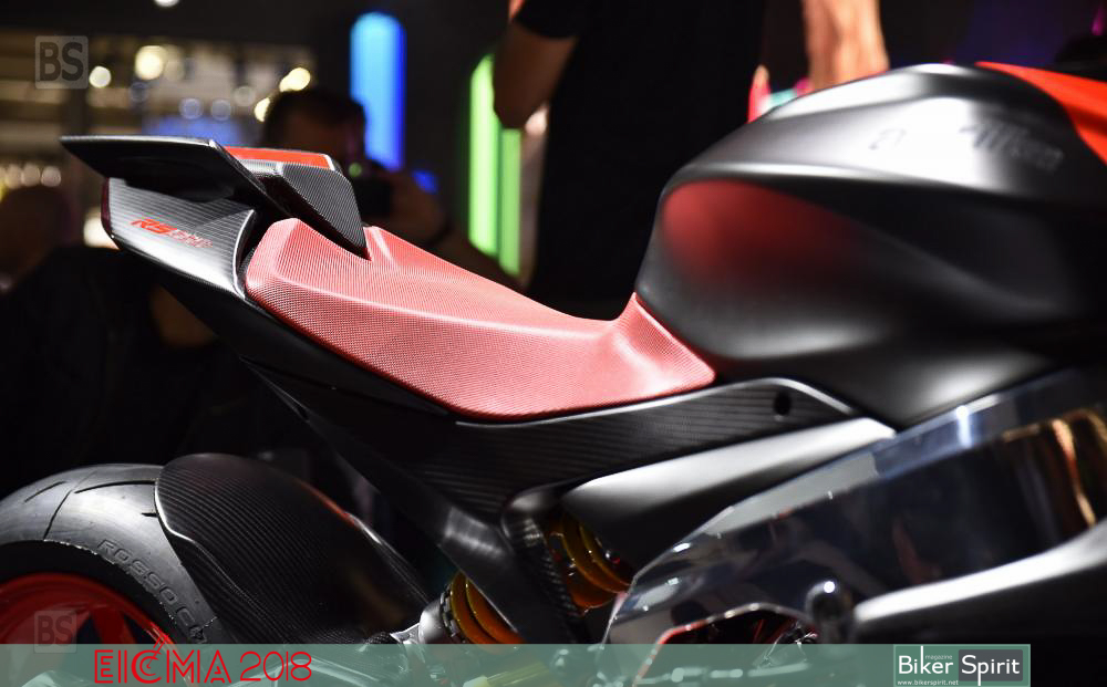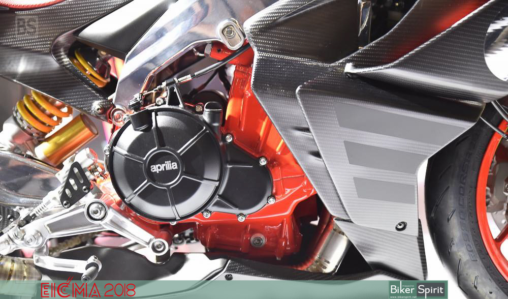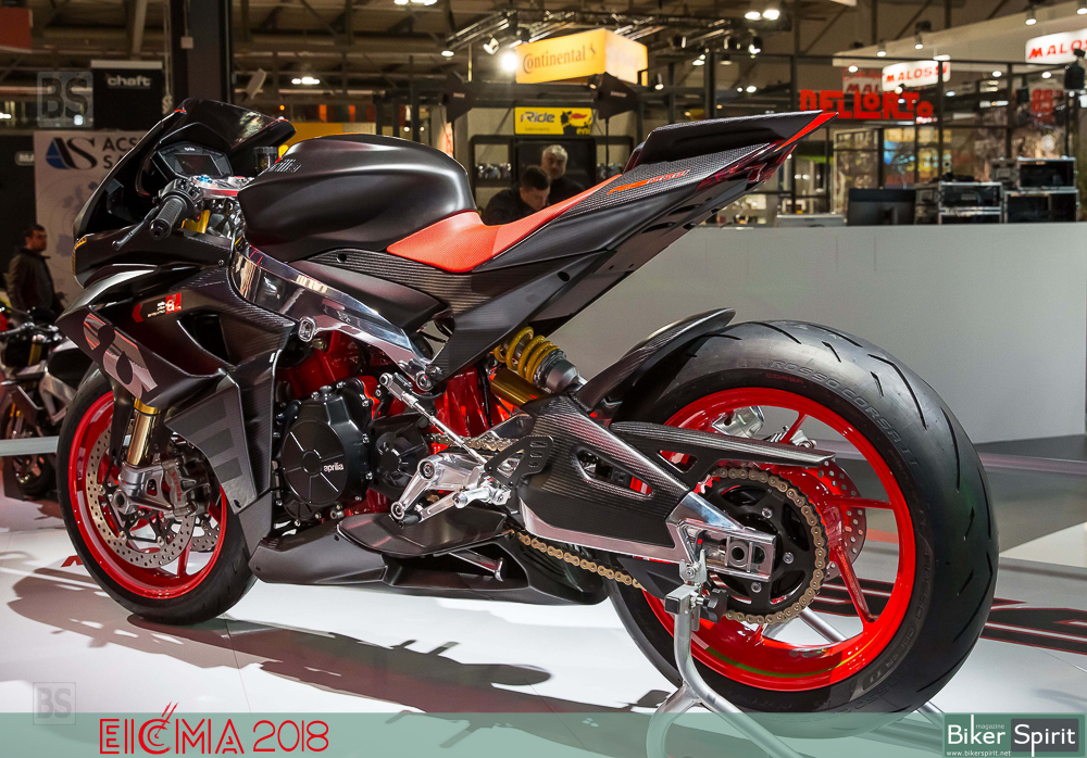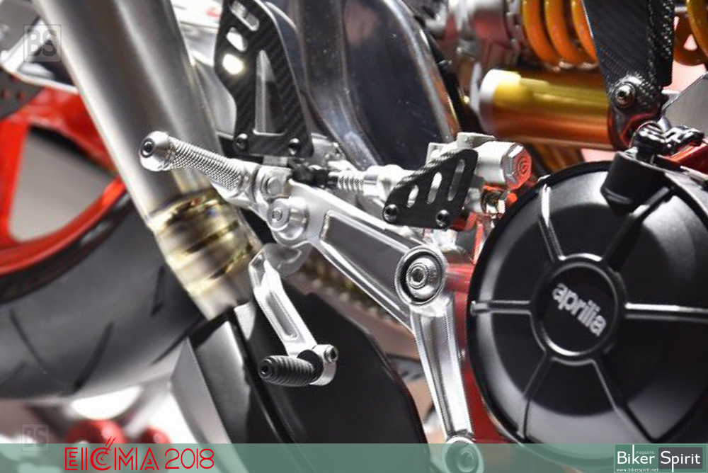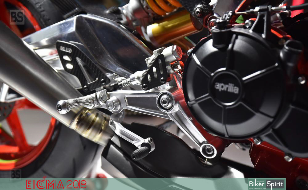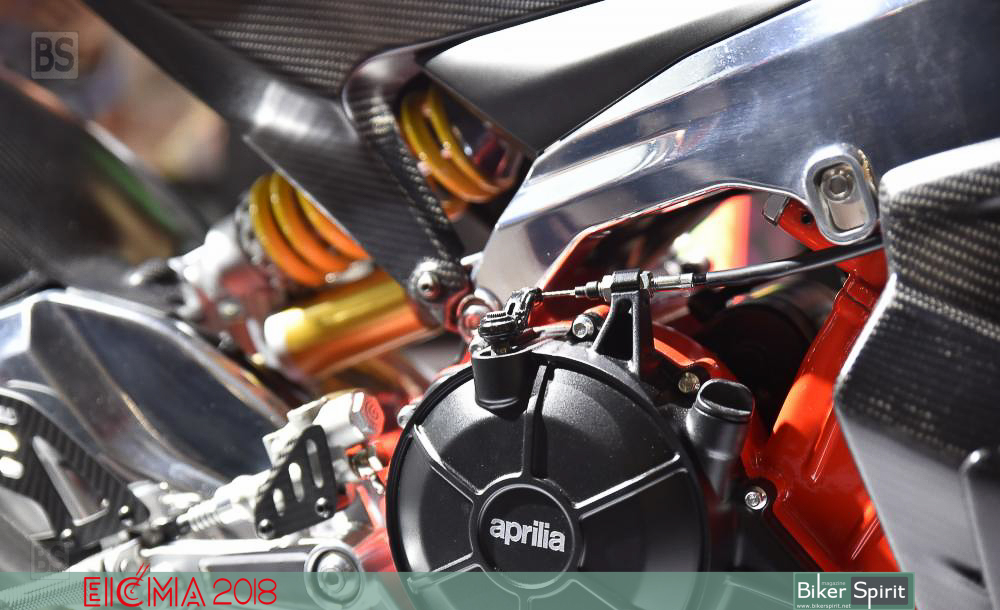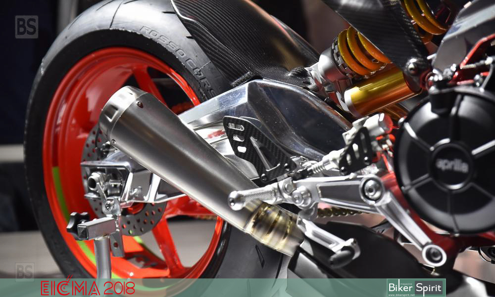 Το πίσω αμορτισέρ του είναι τοποθετημένα απευθείας στο ψαλίδι χωρίς σύνδεση, και όπως λέει η Aprilia επιτρέπει τη βελτίωση των επιδόσεων, με παράλληλη εξοικονόμηση βάρους.