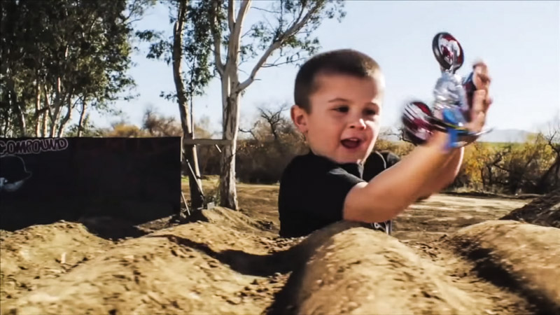 Χαρακτηριστική είναι η αναδρομή που γίνετε στο βίντεο, με τον Haiden σε πολύ μικρή ηλικία να παίζει με την πλαστική μοτοσυκλέτα στα χέρια του και να αντιγράφει τις προσπάθειες του πατέρα του. Τον βλέπουμε να μαθαίνει ισορροπία και να κάνει τα πρώτα του μικρά αλματάκια με την πρώτη του μοτοσυκλέτα, ενώ αργότερα με την KTM των 65cc κάνει και τις πρώτες του προσπάθειες στον ειδικό «κάδο» προσγείωσης, για να προπονηθεί με ασφάλεια.